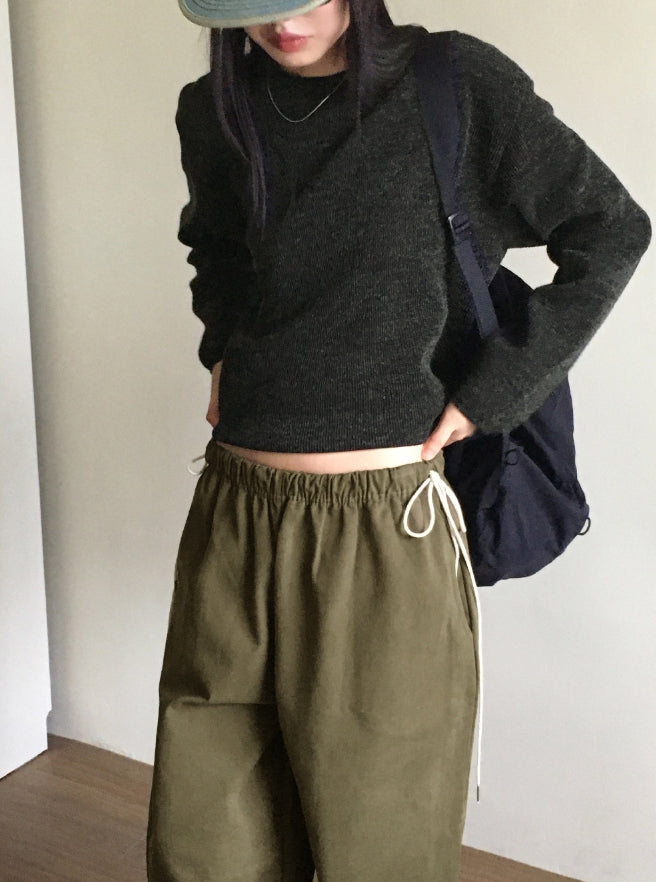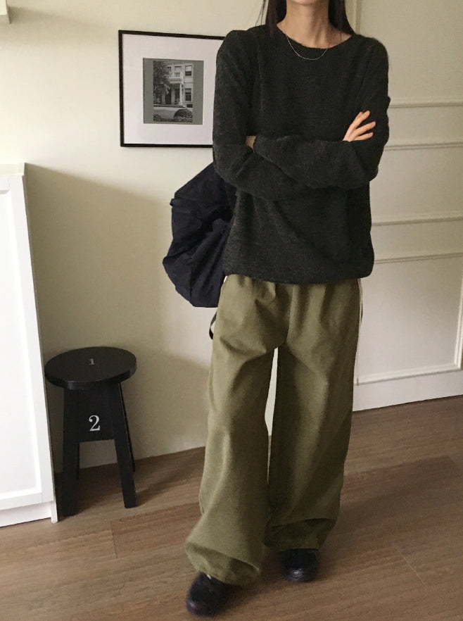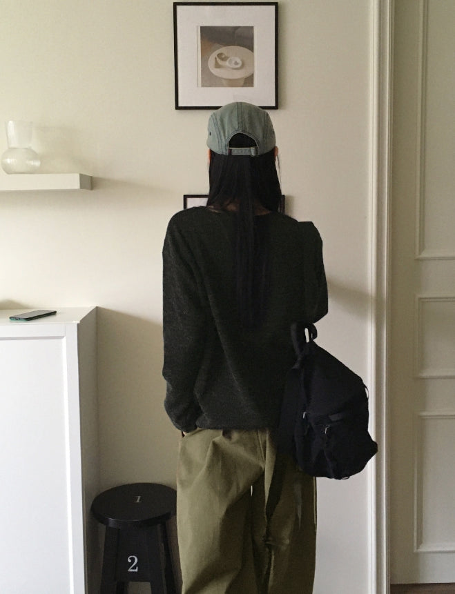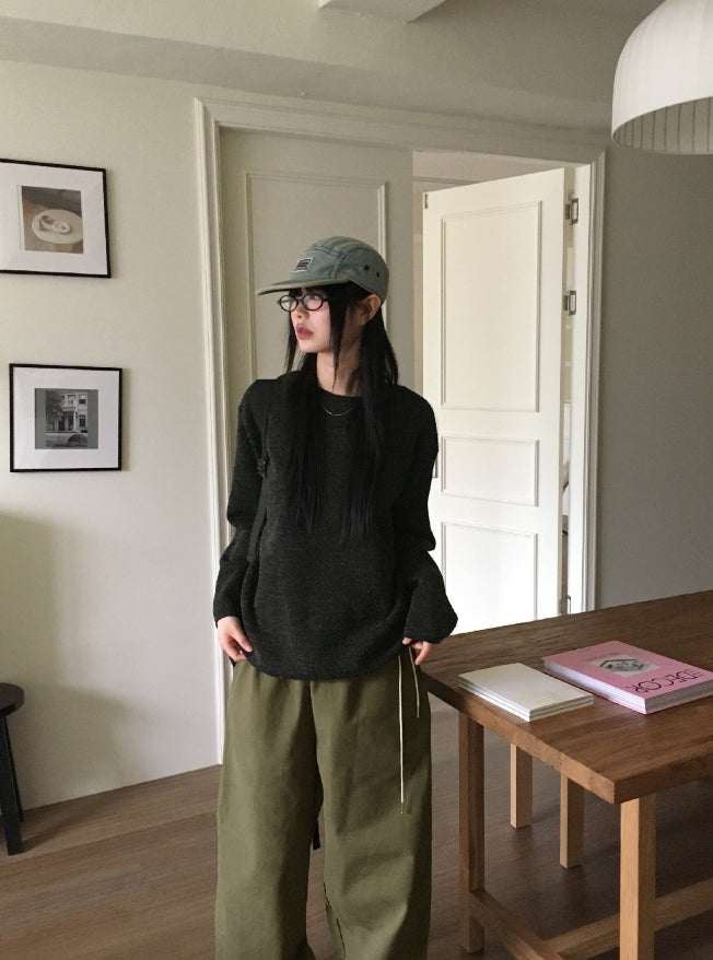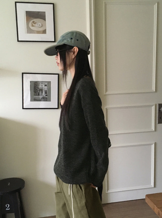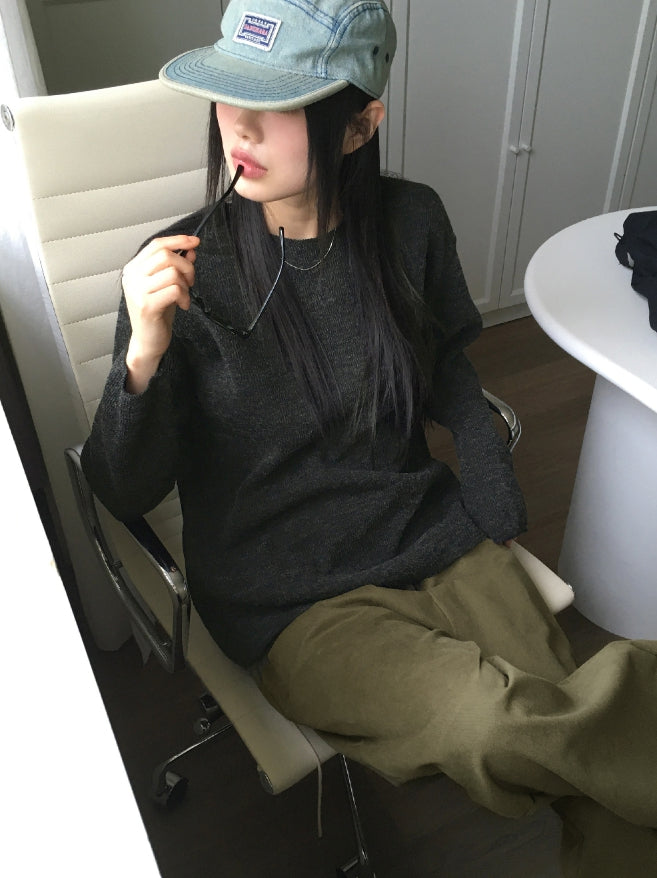 シクダメージデキラウンドルーズフィット長袖ニットTシャツ