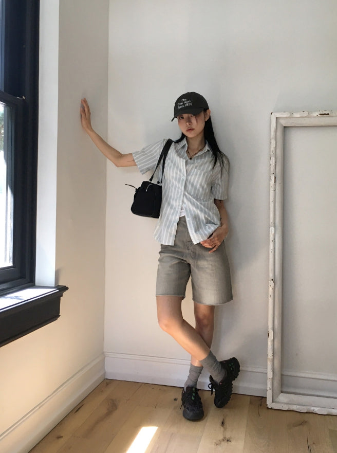 Silat Gray Washing Bermuda Half-Length Denim Shorts