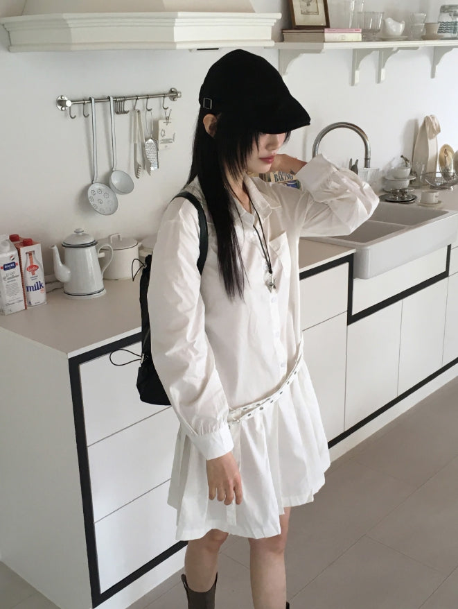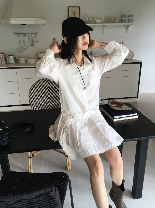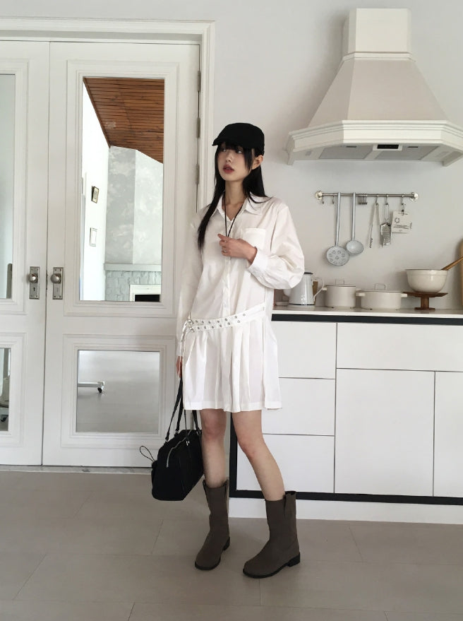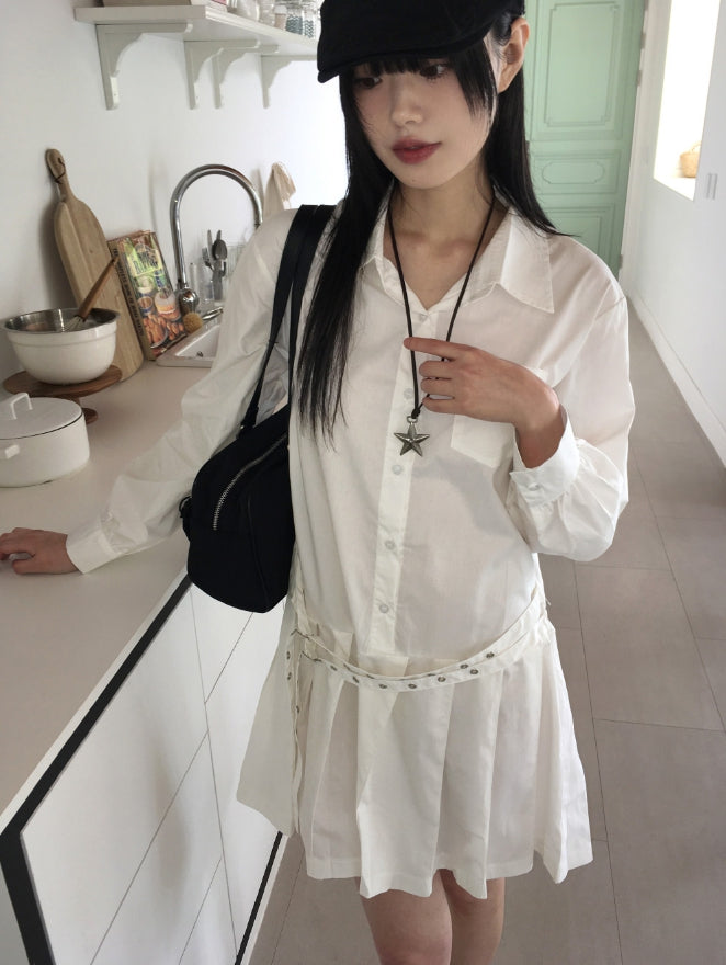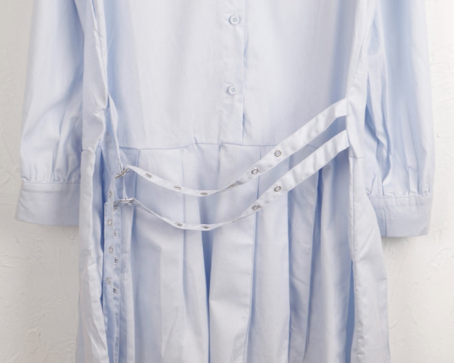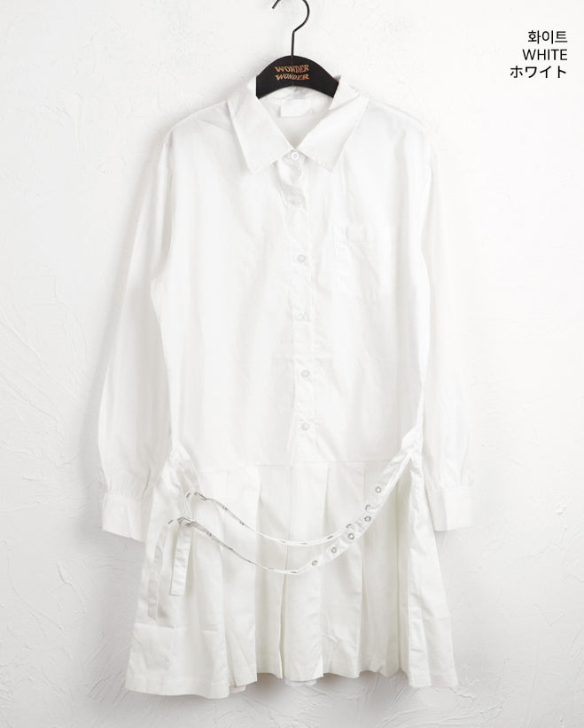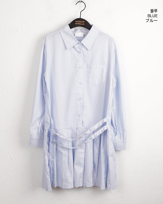 ソジュンアイレットベルトプリーツシャツミニワンピース
