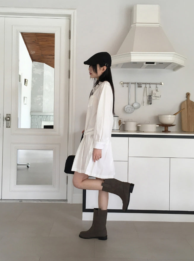 Sojeun Eyelet Belt Pleats Shirt Mini One Piece