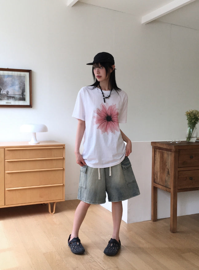 Somi Flower Printed Oversized Fit Box Short Sleeve T-shirt