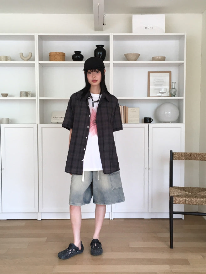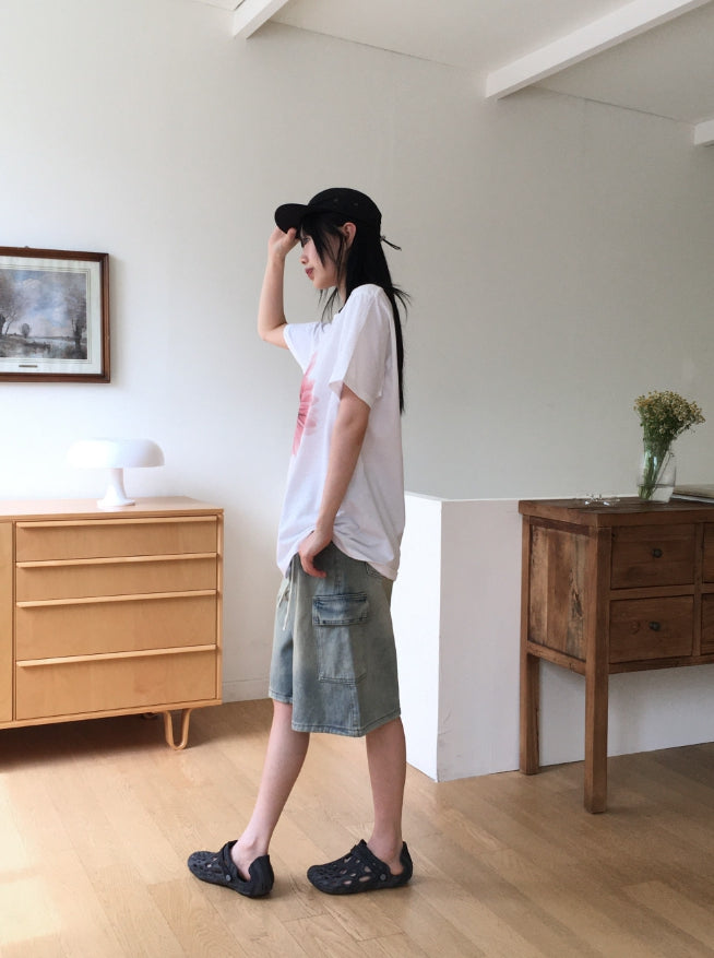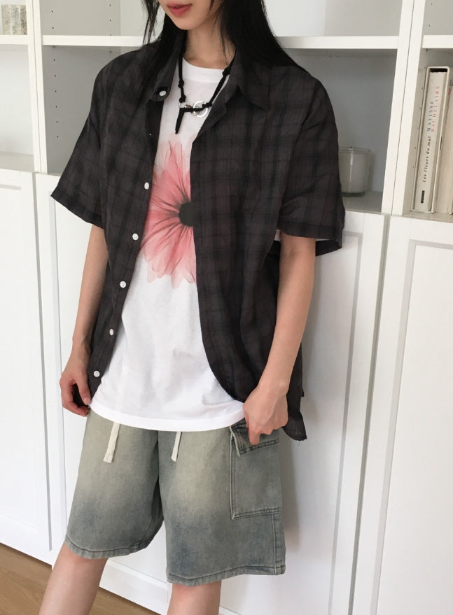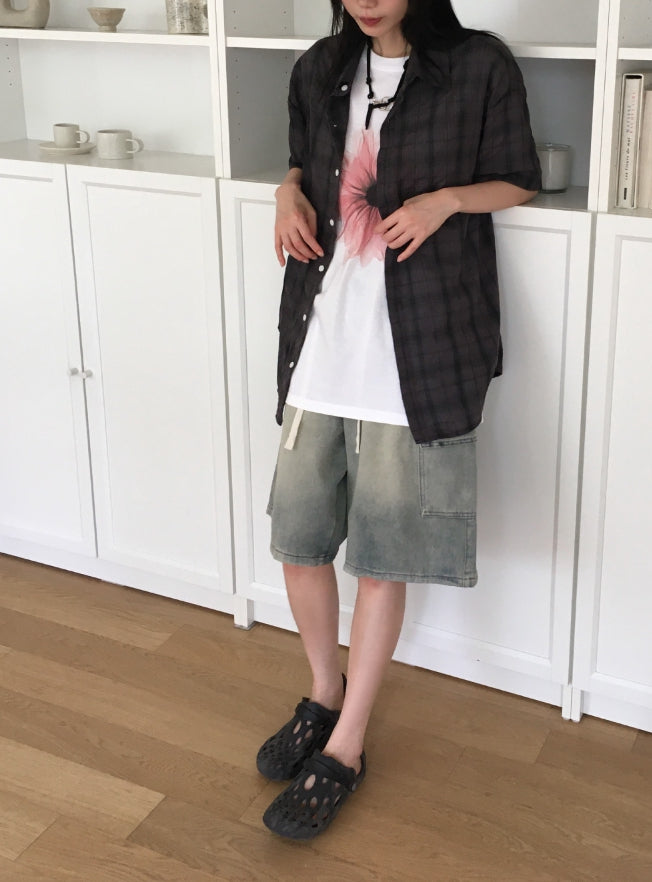 ソミ花捺染オーバーフィットボクシー半袖Tシャツ