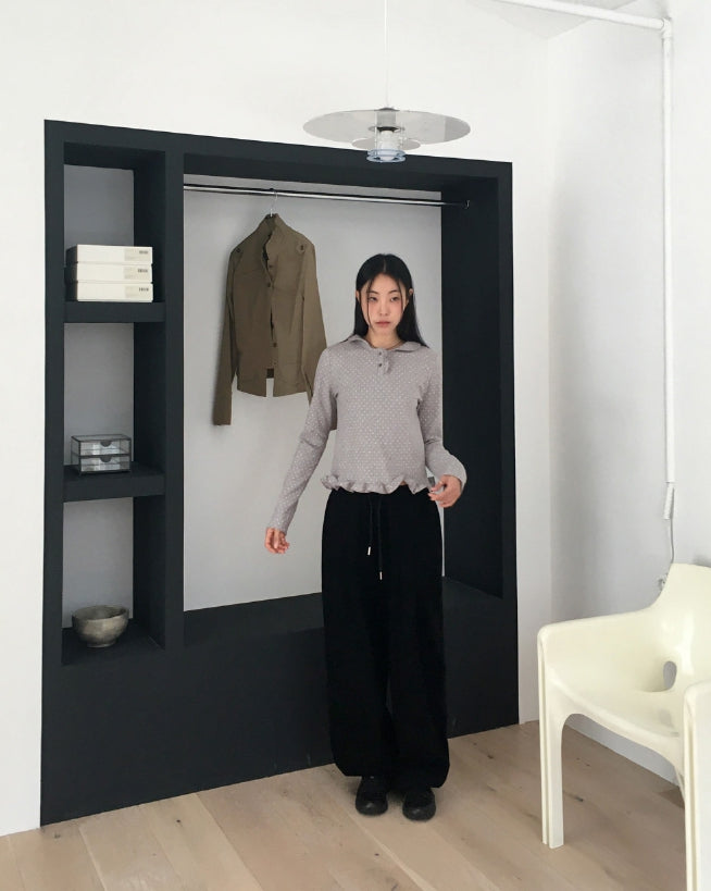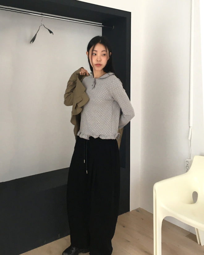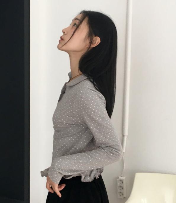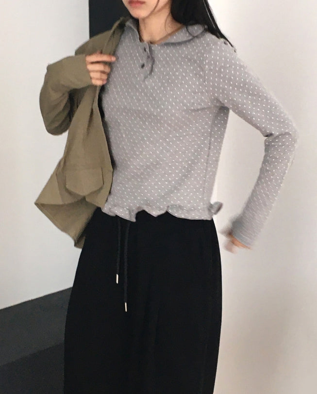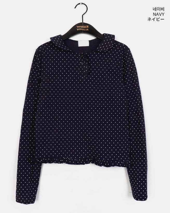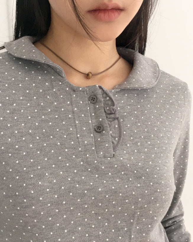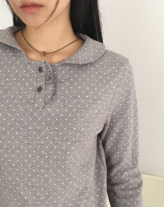 Sotten Mini Dot Polka Dot Frill Collar T-Shirt