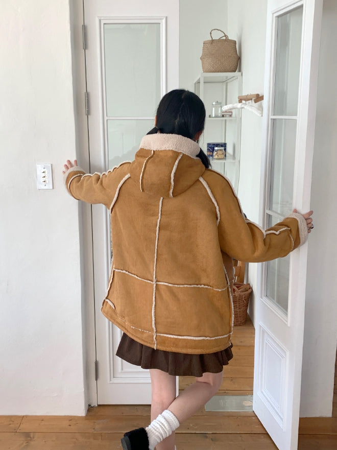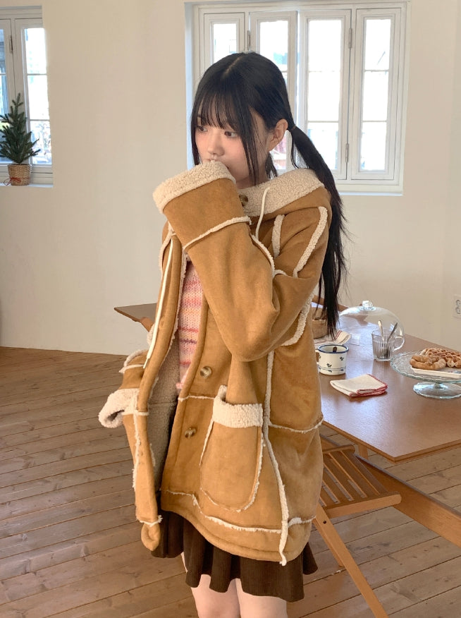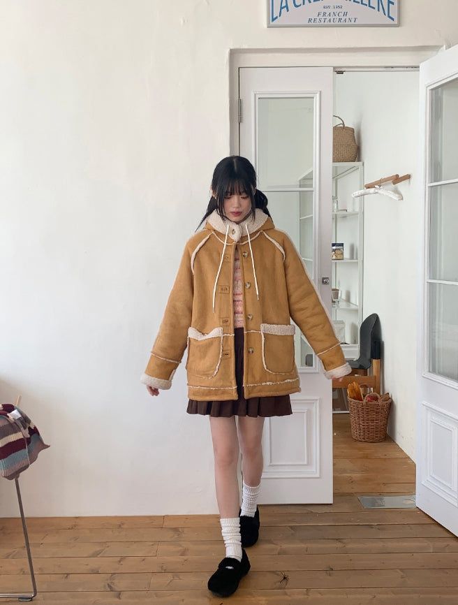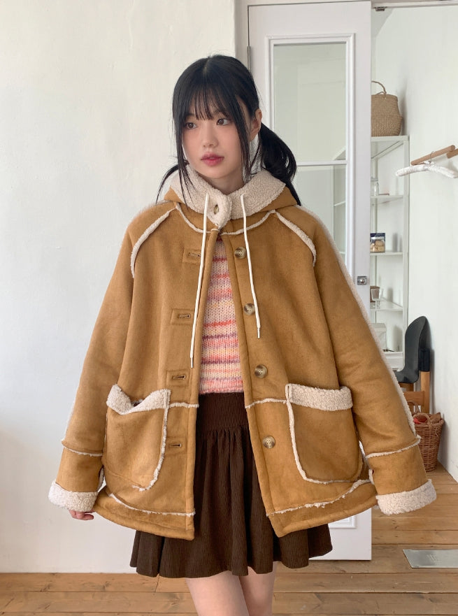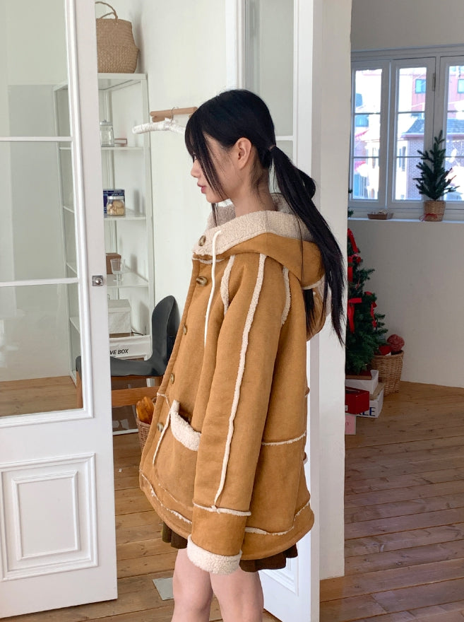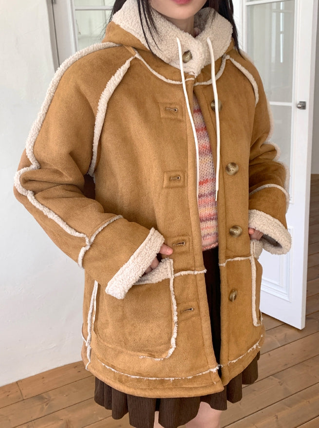タマスエードルーズフィットフードフリースムートン
