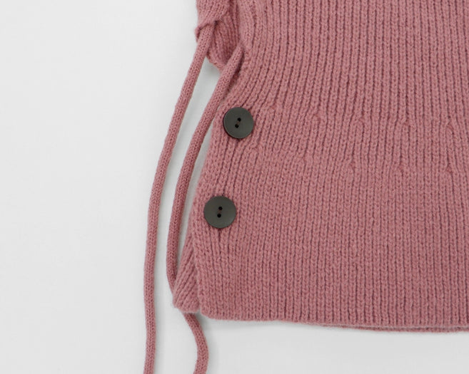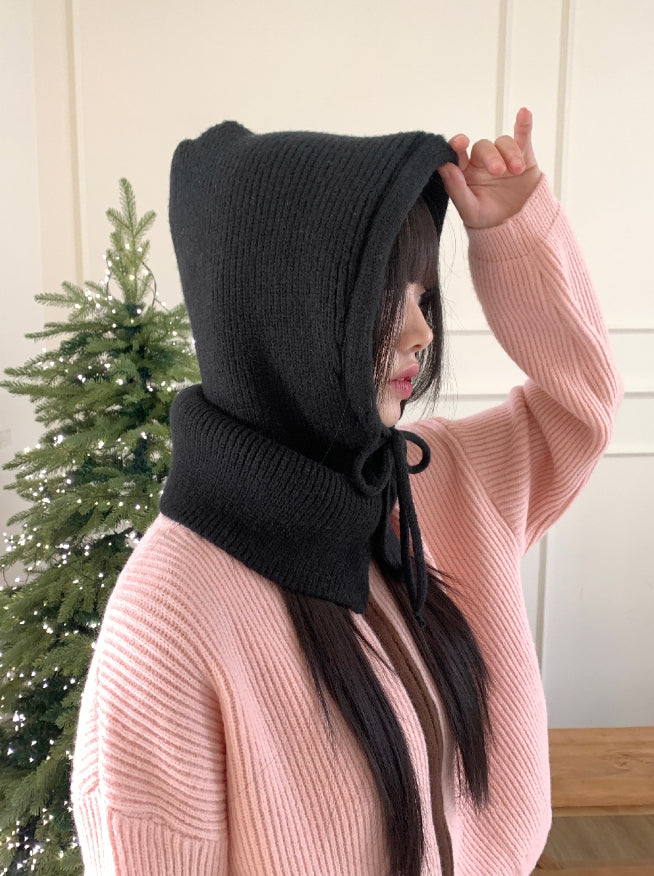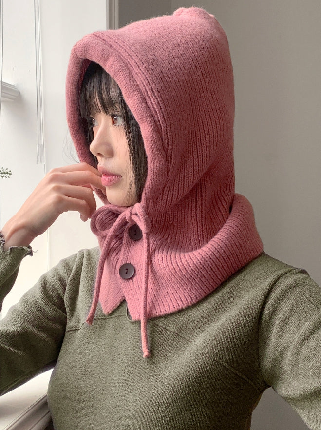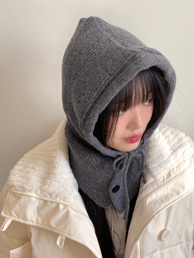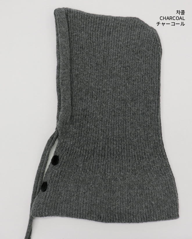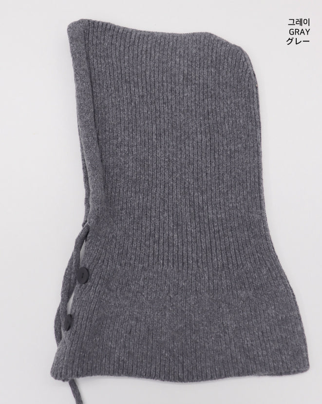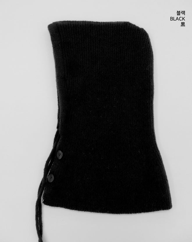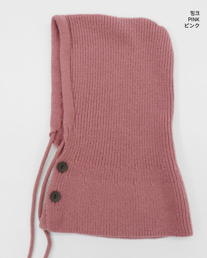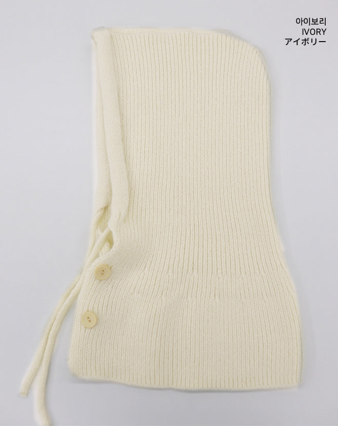 Tenu Two Button Hooded Knit Ribbon Strap Balaclava