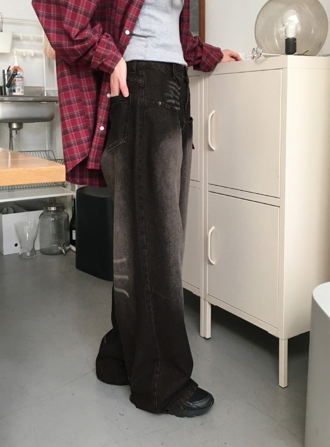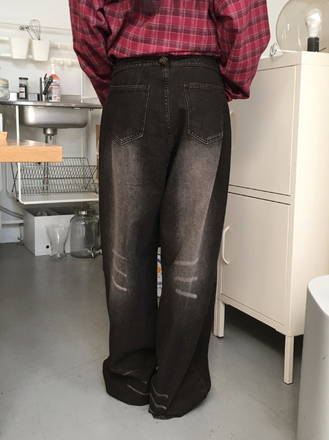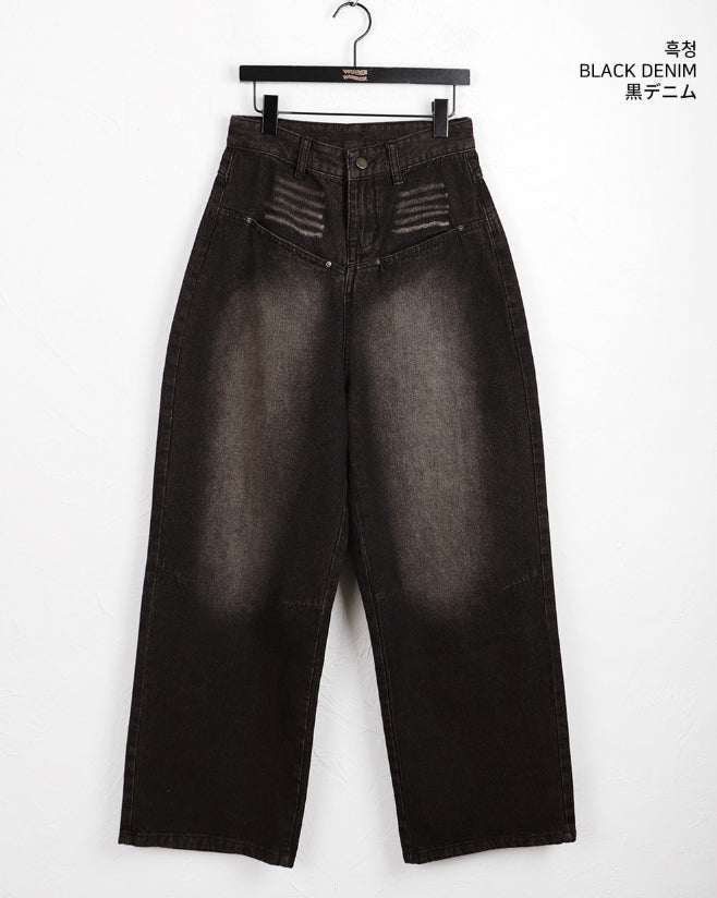 Tessing Catwashing Pocket Denim Long Wide Pants