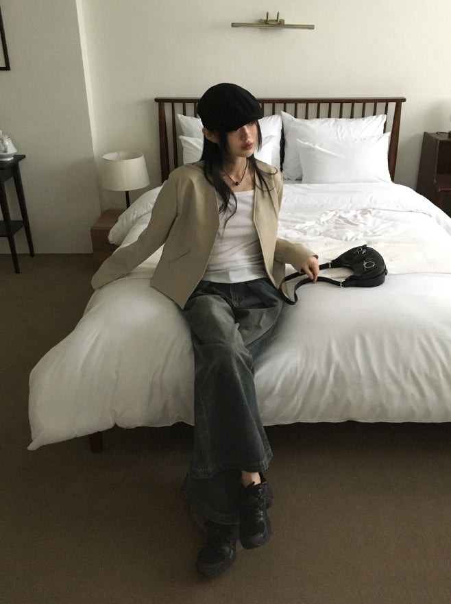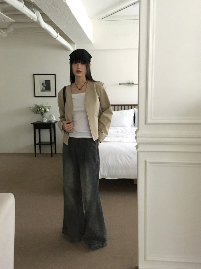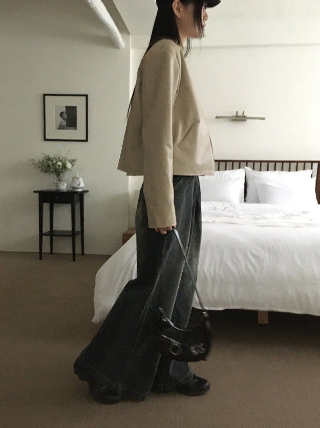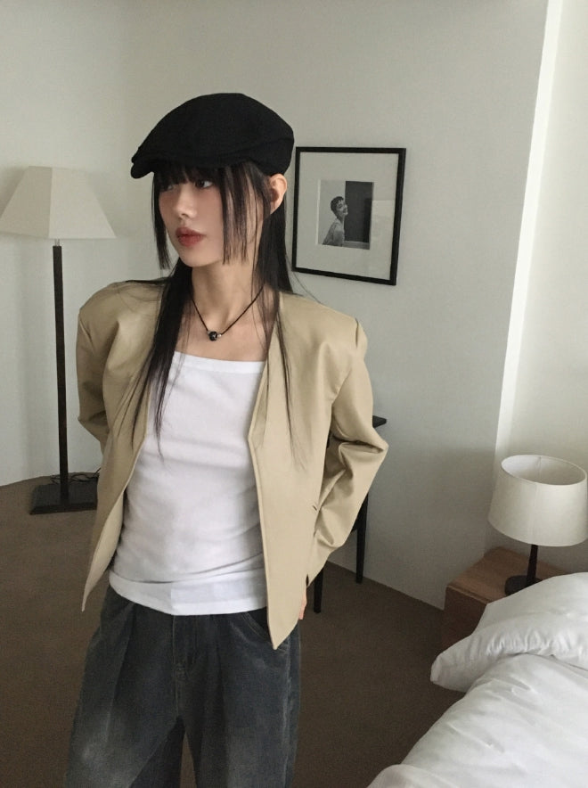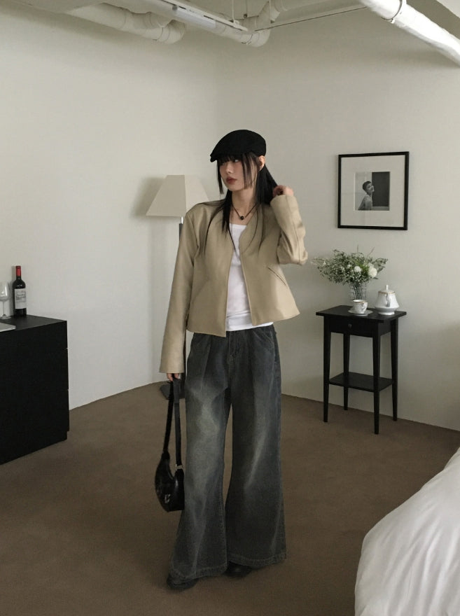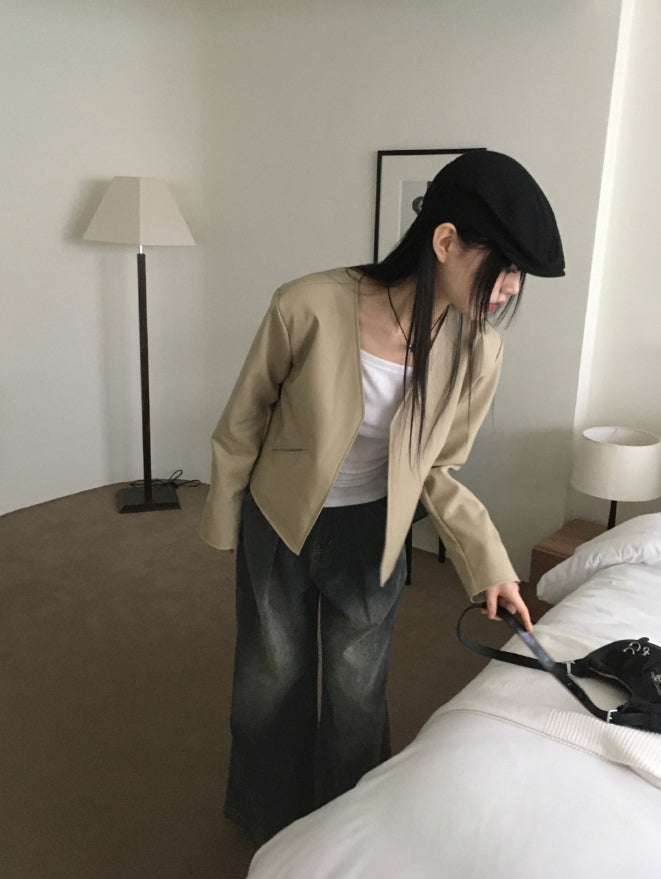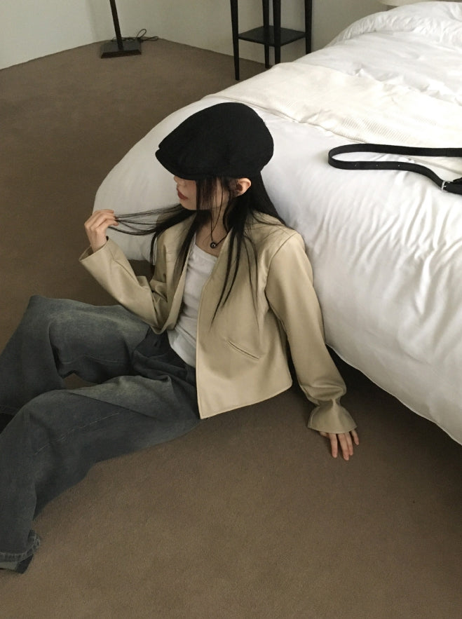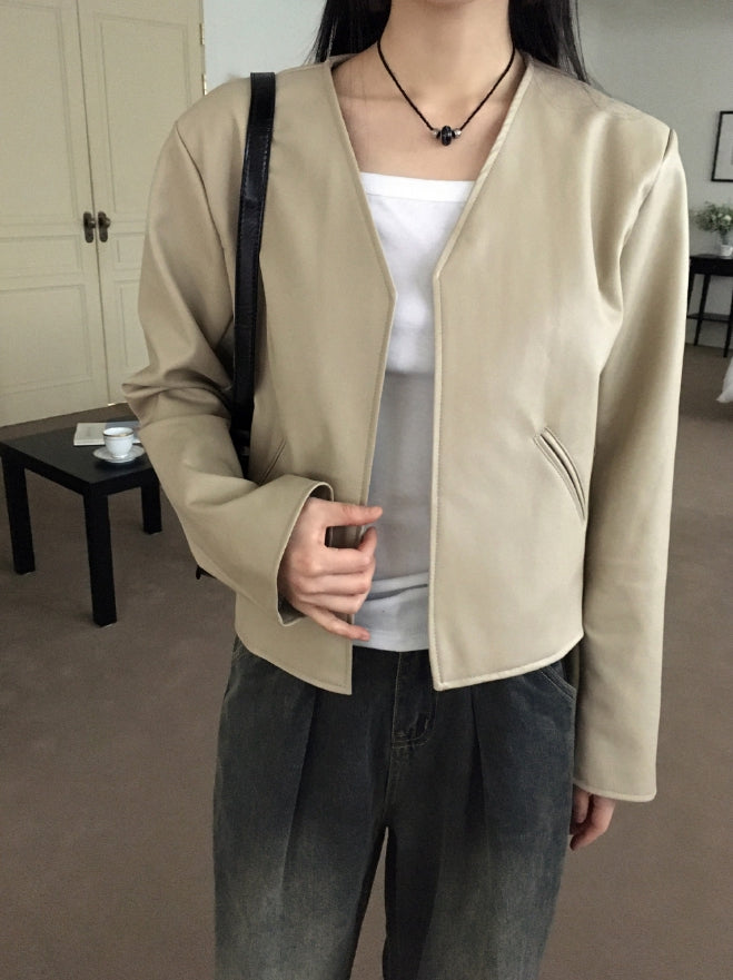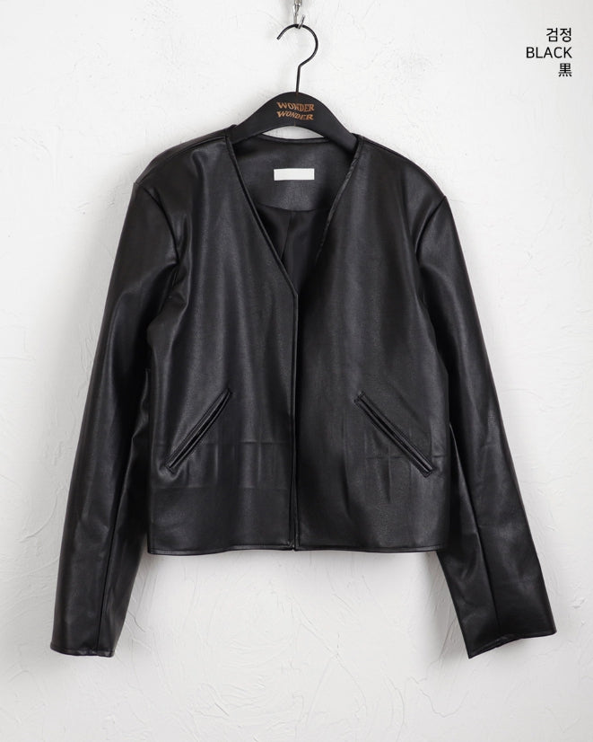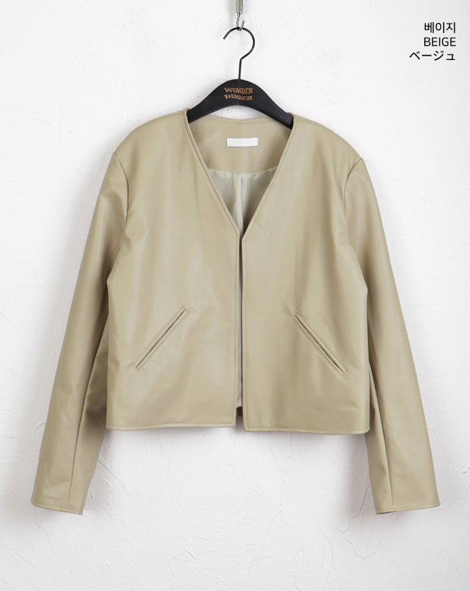 Tf No Collar V Short Leather Jacket