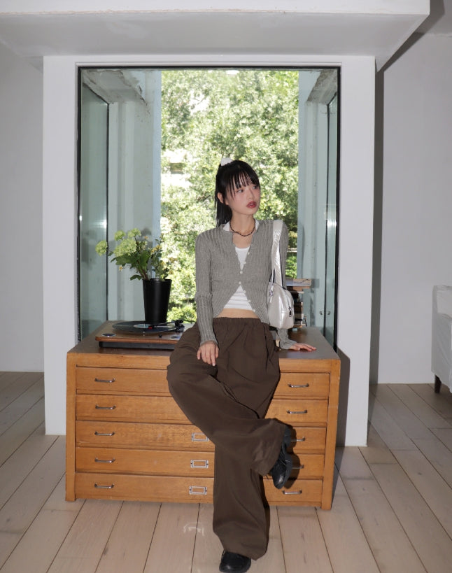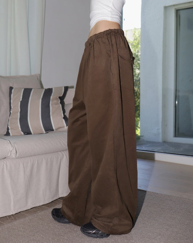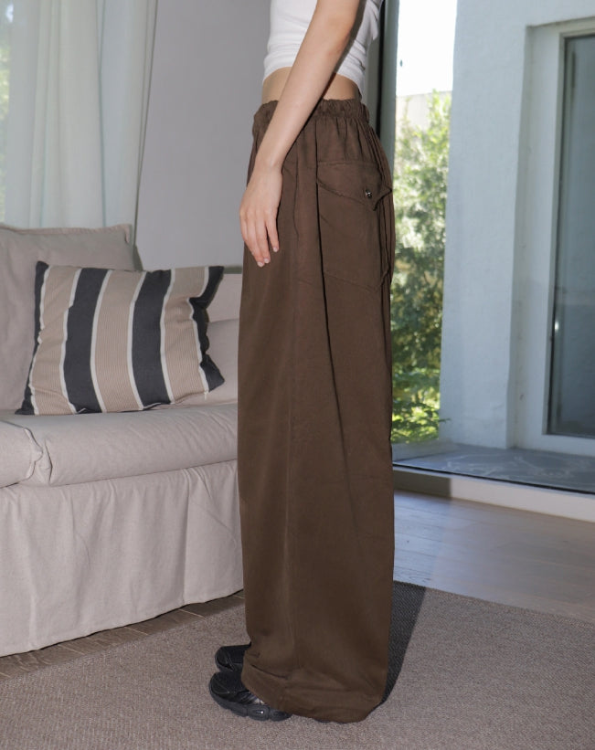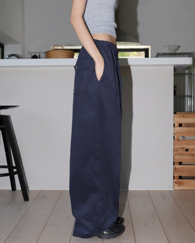 Thermel back pocket accent wide cotton pants