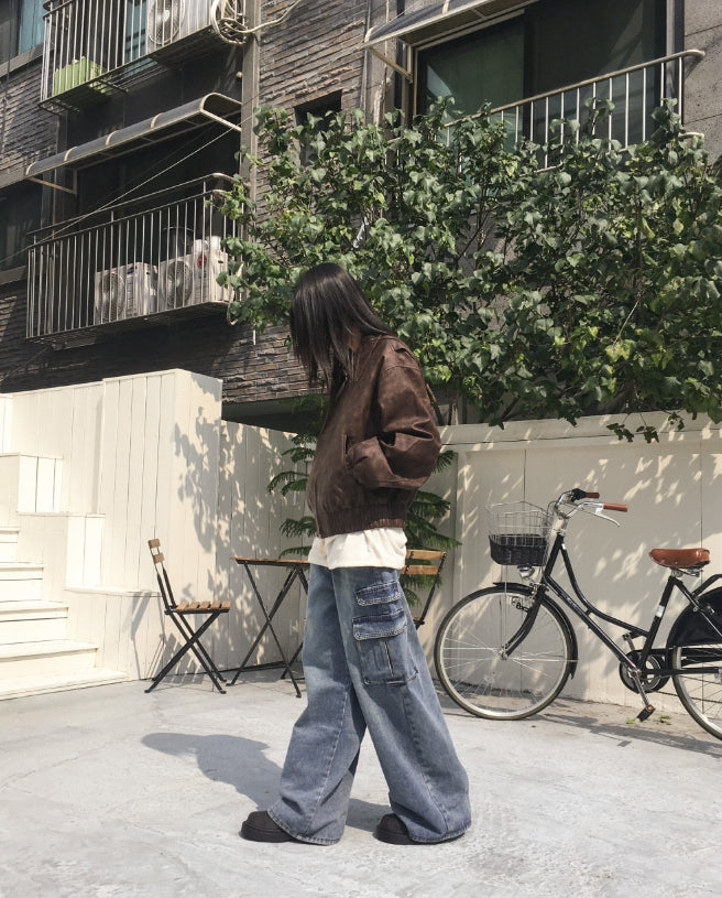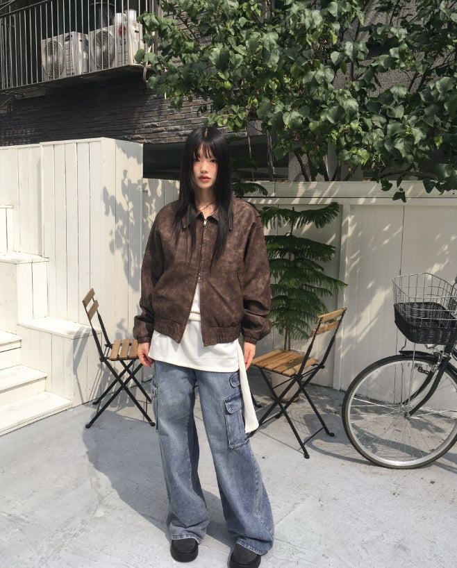 Timber Vintage Washing Leather Two-Way Blouson Jacket