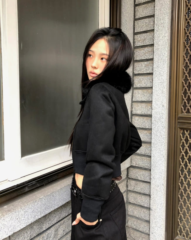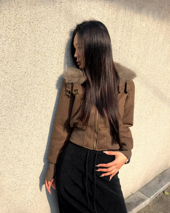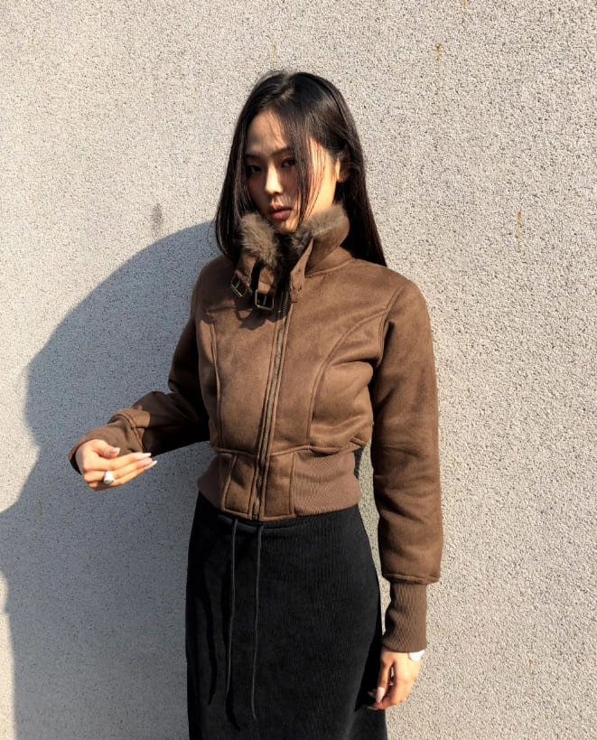 Tmin Shibori Buckle High Neck Fur Lining Short Mustang