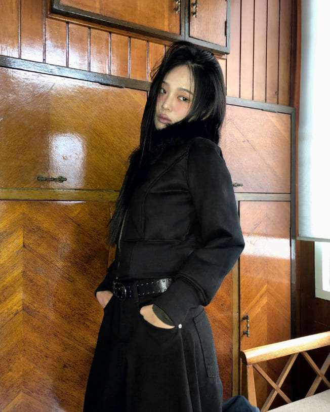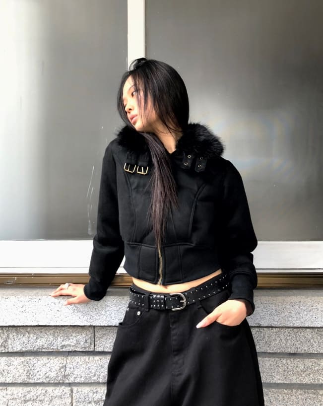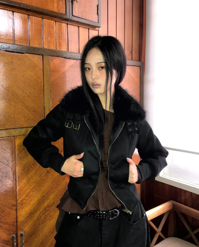 トミンシボリバックルハイネックファー裏地ショートマスタングジャケット