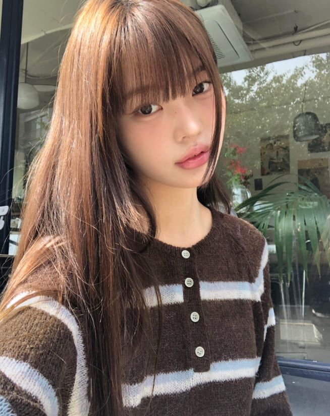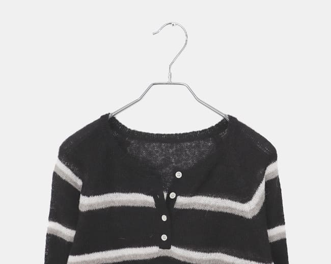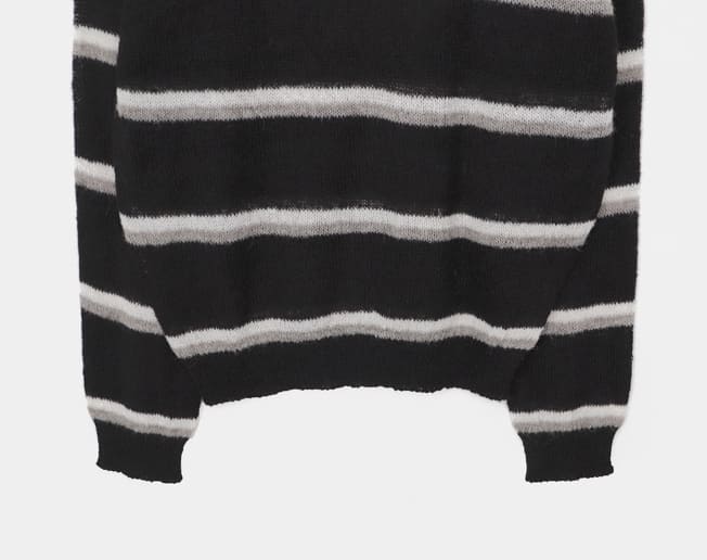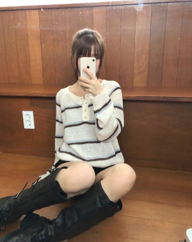 トッセンストライプボタンヘンリーネック長袖ニット