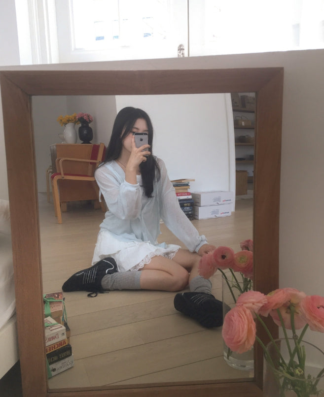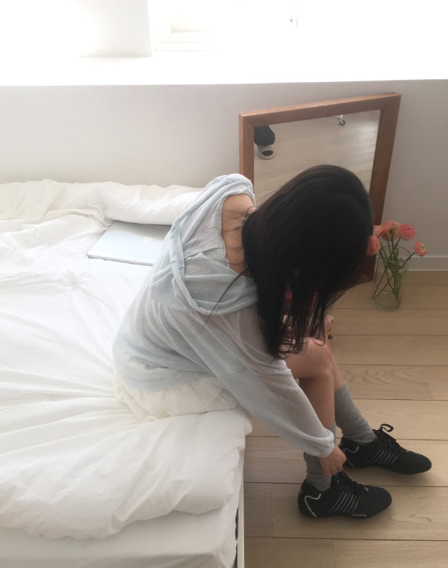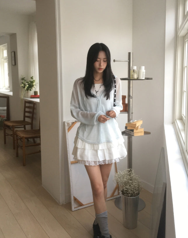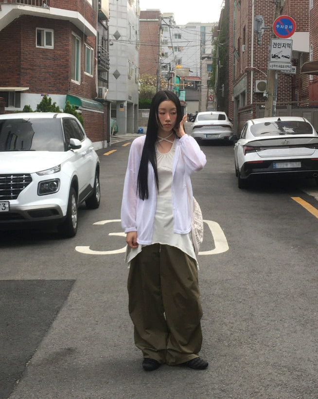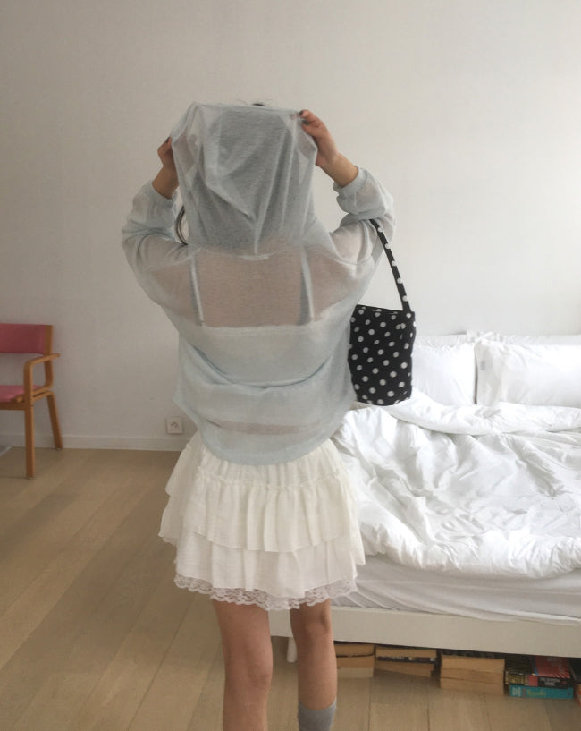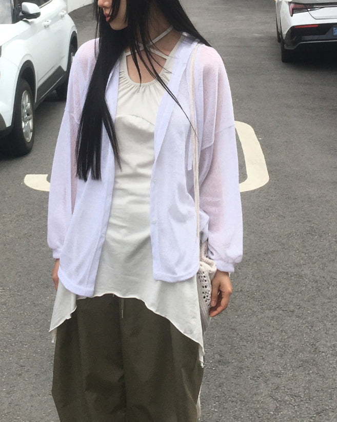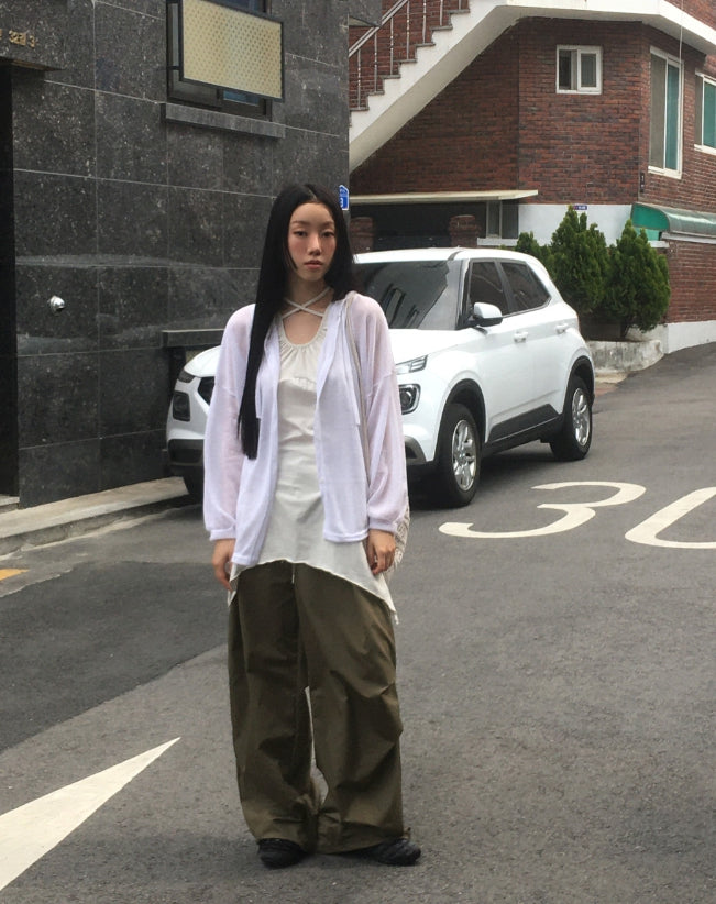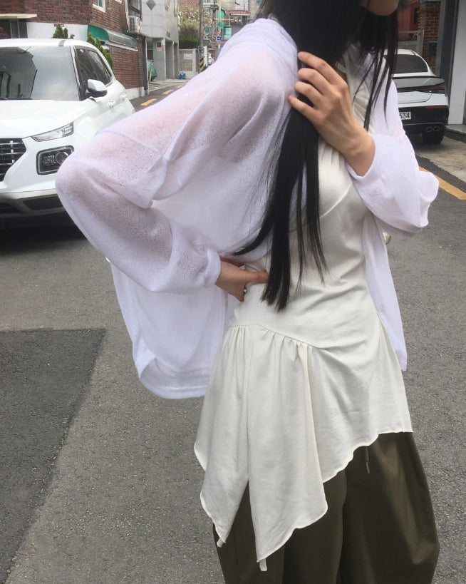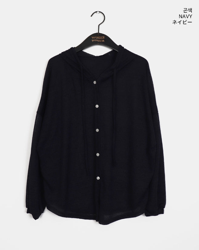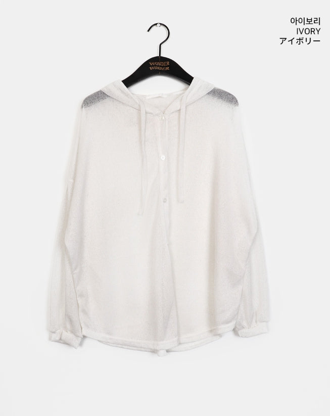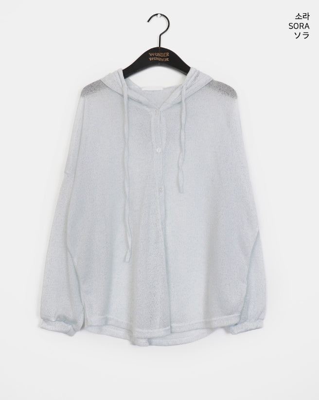 ツキンシースルーリネンフードカーディガン