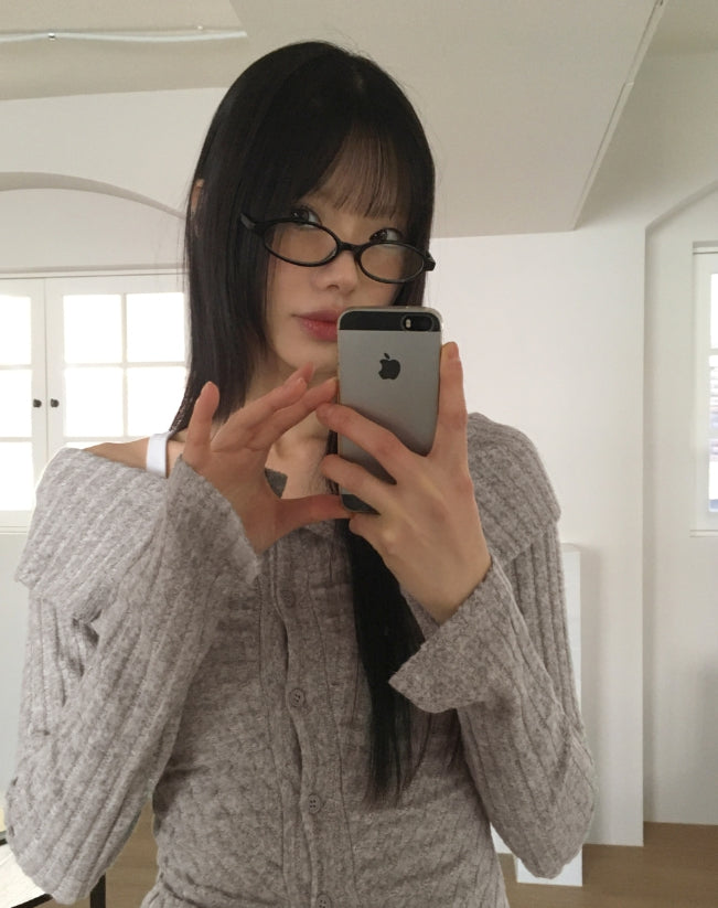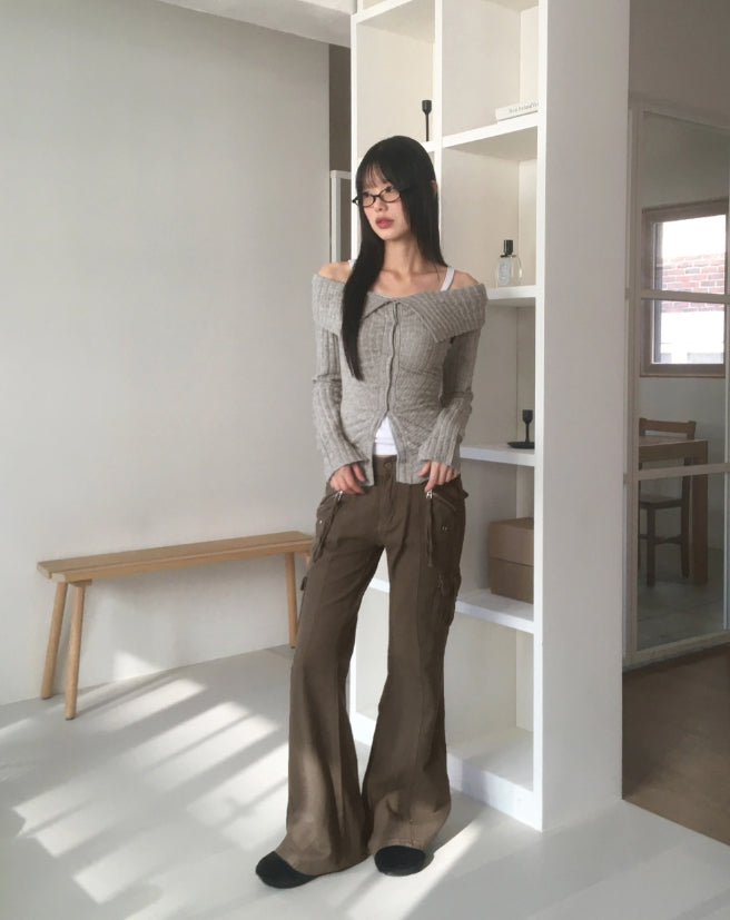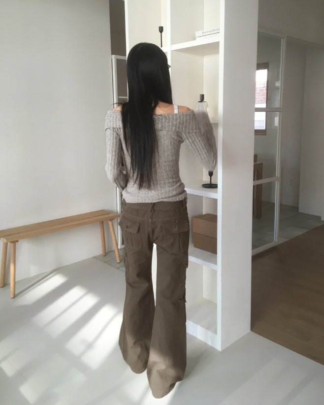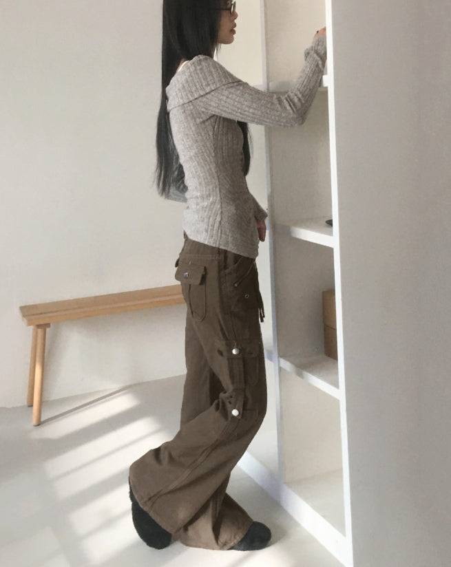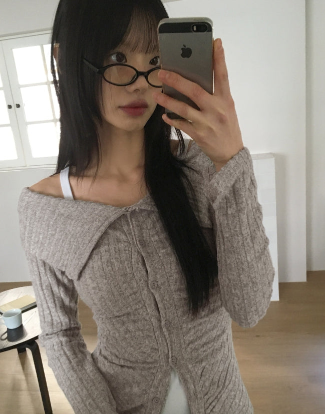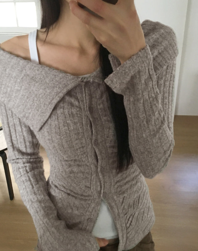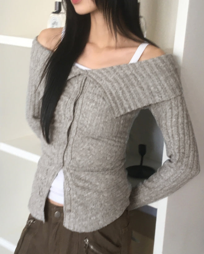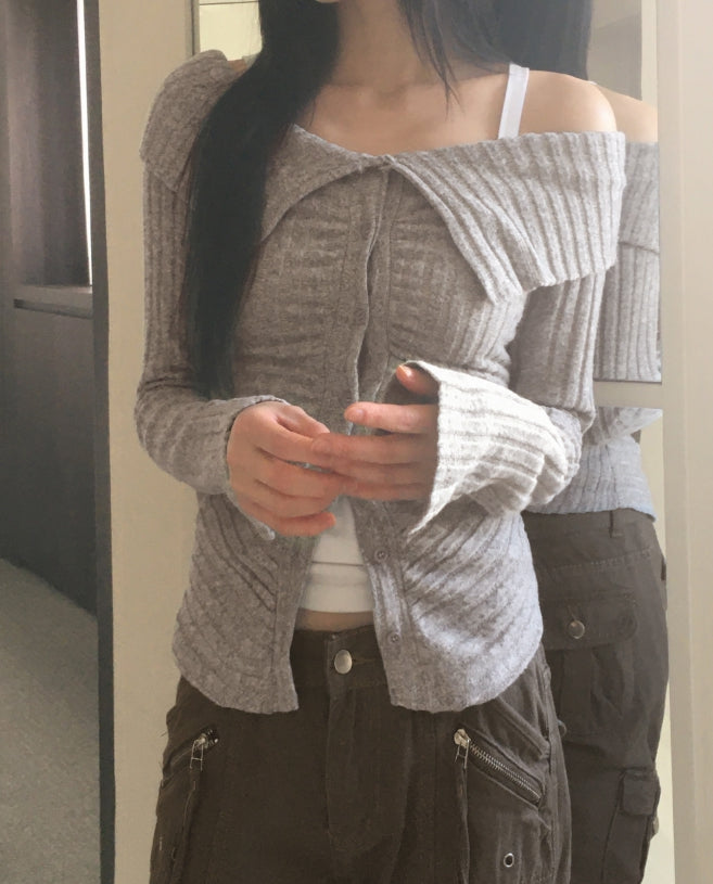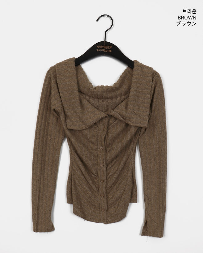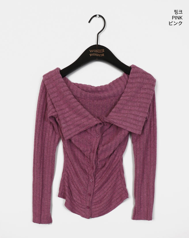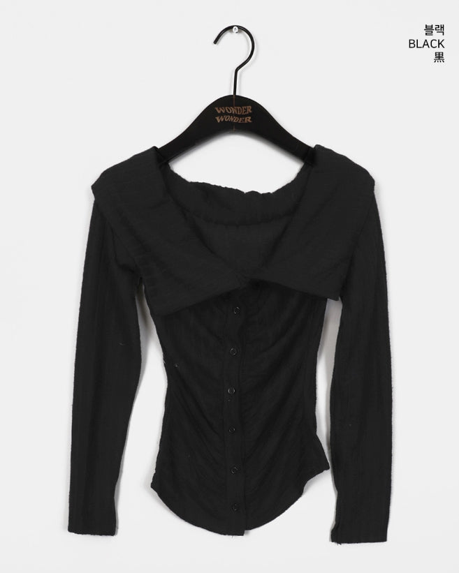 ツポルボカシ襟付きオフショルダーボタン起毛Tシャツ