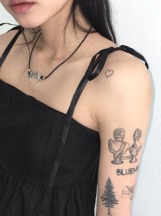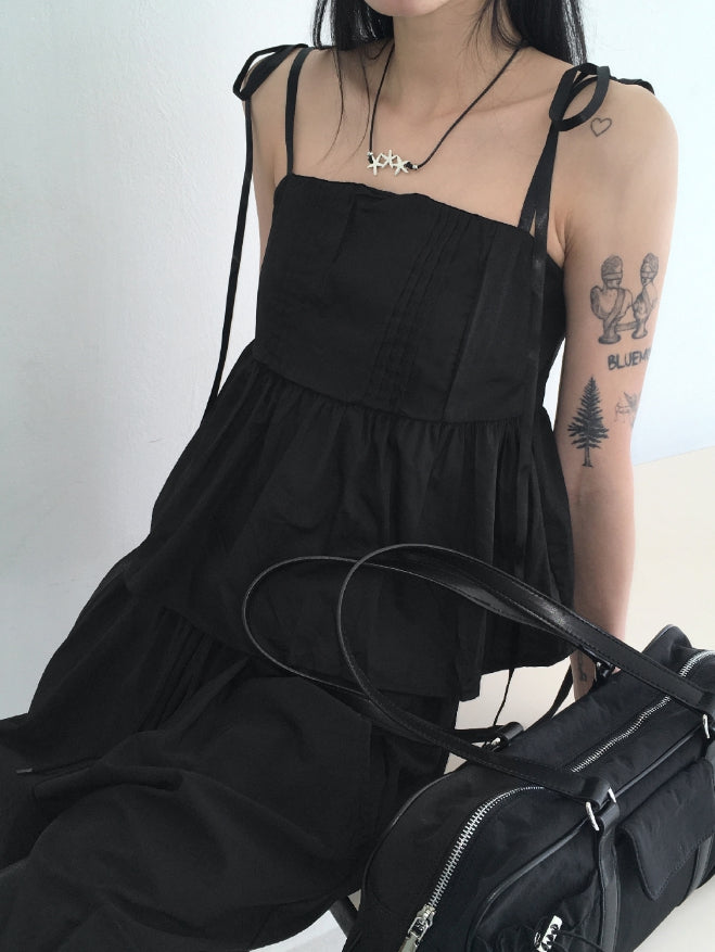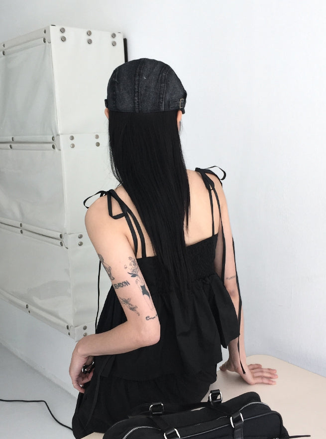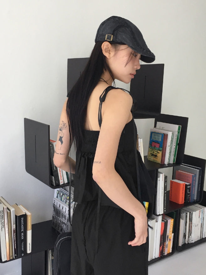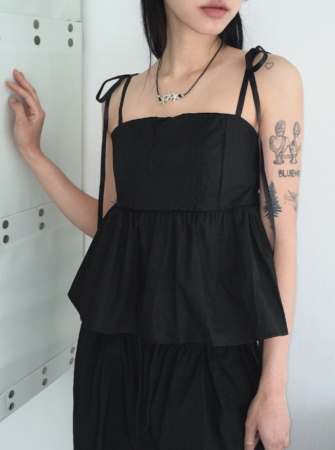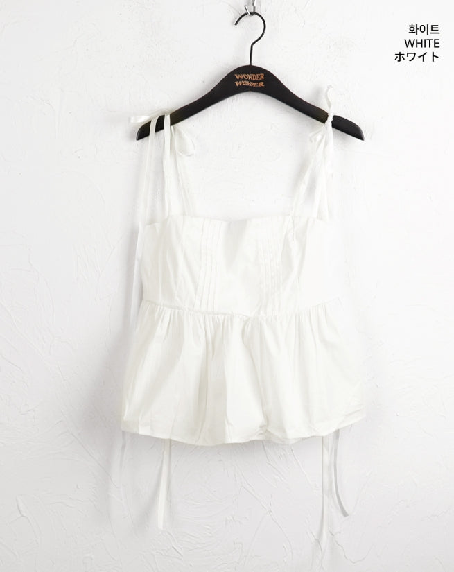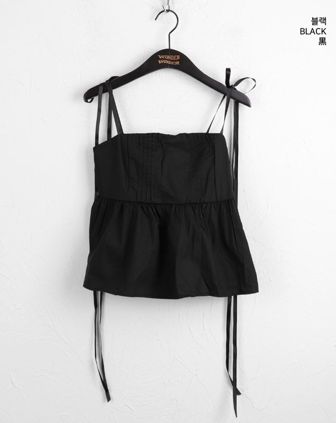 ティッドピンタックフレアリボンストラップスモーキングキャミソールブラウス