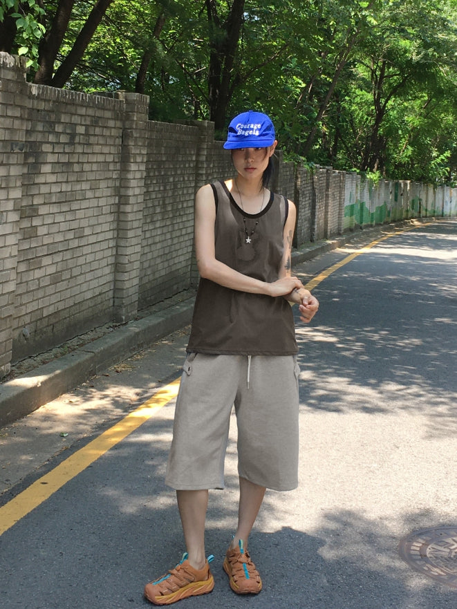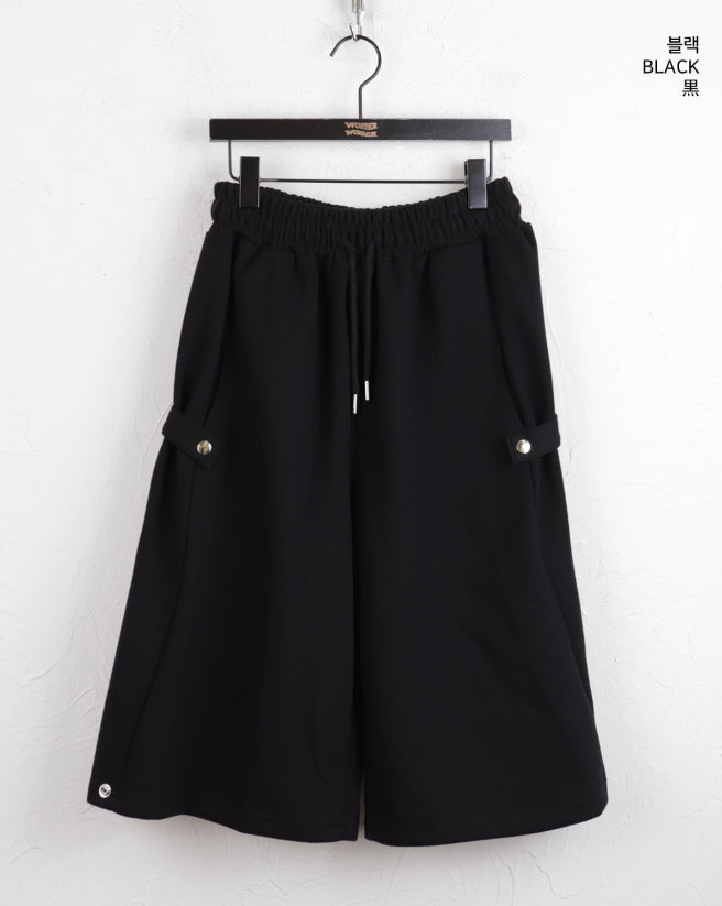 [UNISEX] Cutts Side Snap Capri Bermuda Spandex Pants