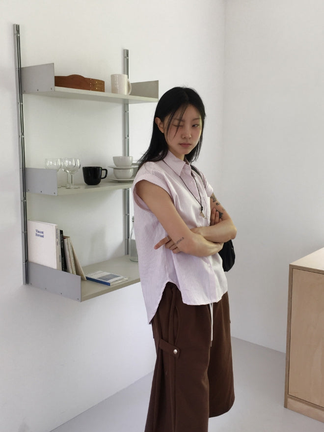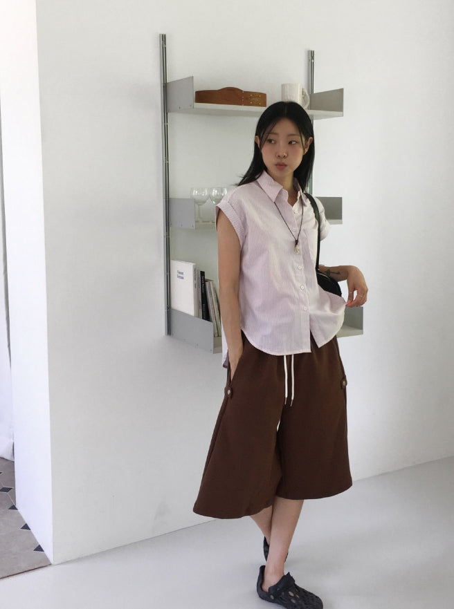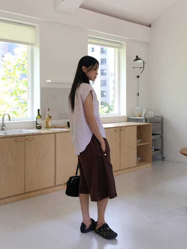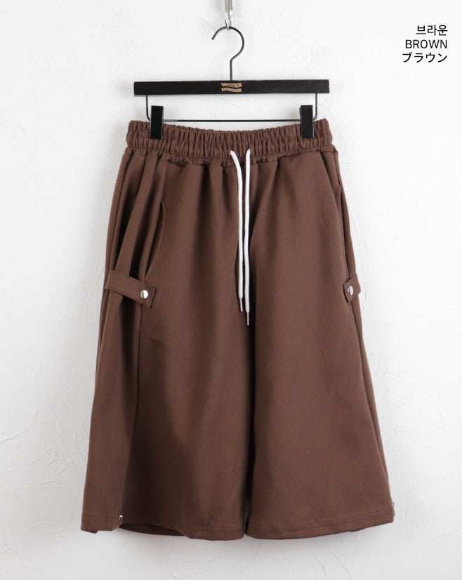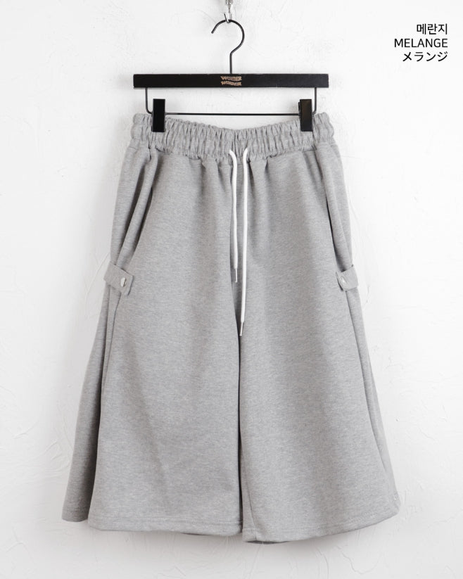 [UNISEX] Cutts Side Snap Crop Bermuda Pile Pants