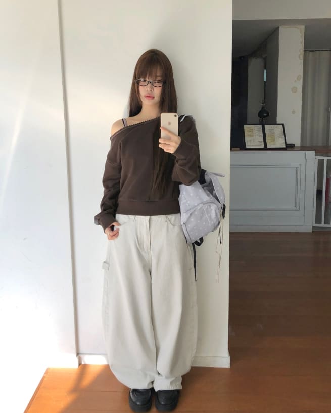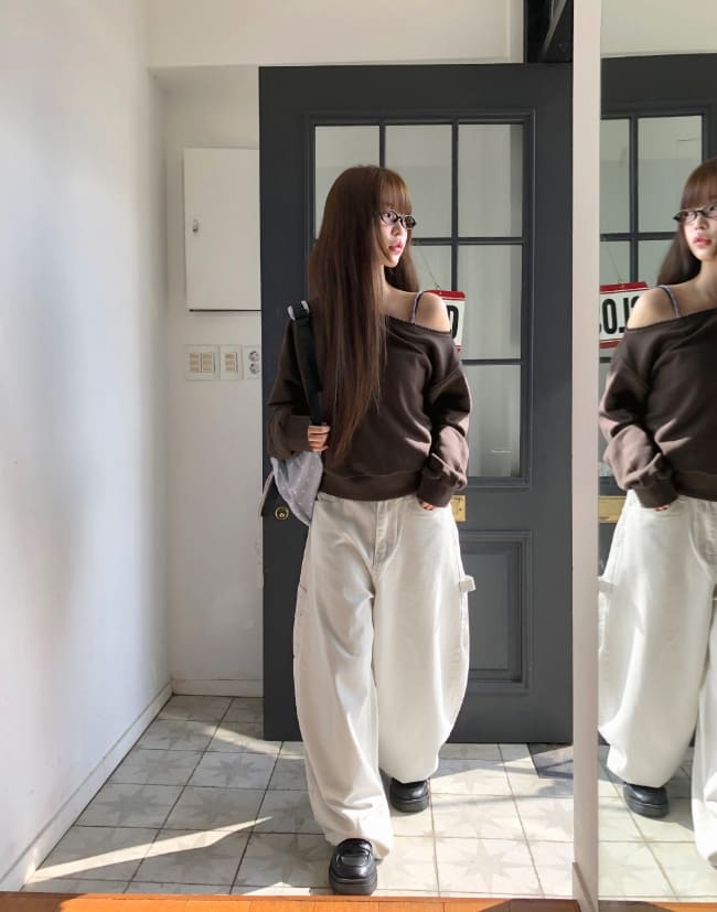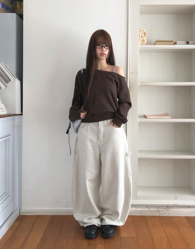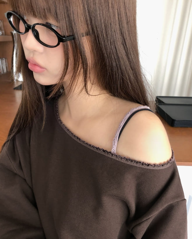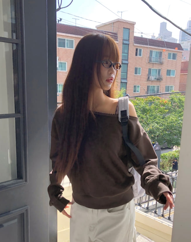 アーバンレースワンオフショルダー長袖スウェットシャツ
