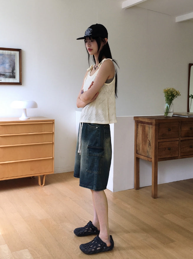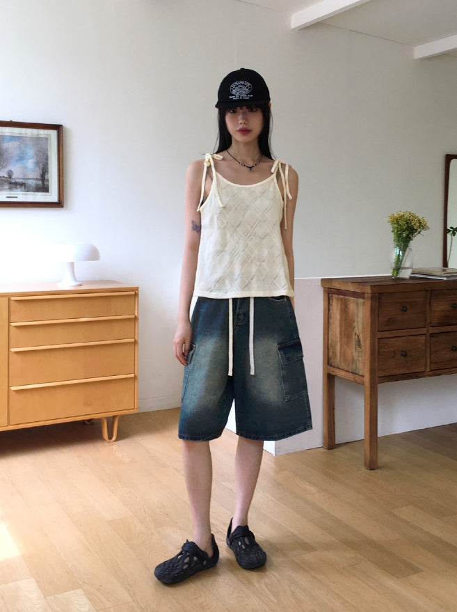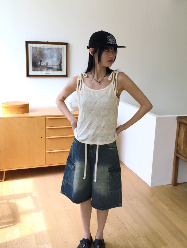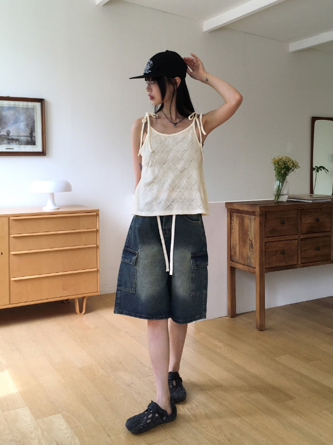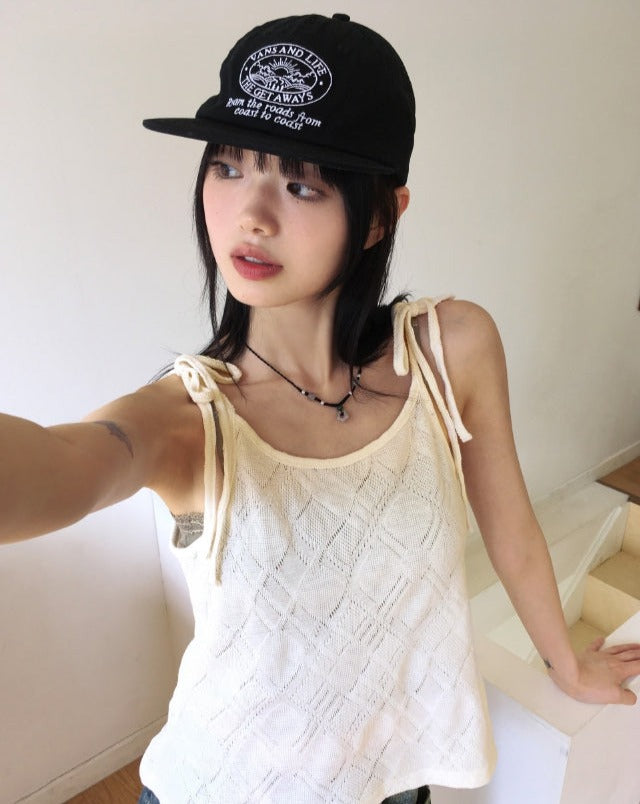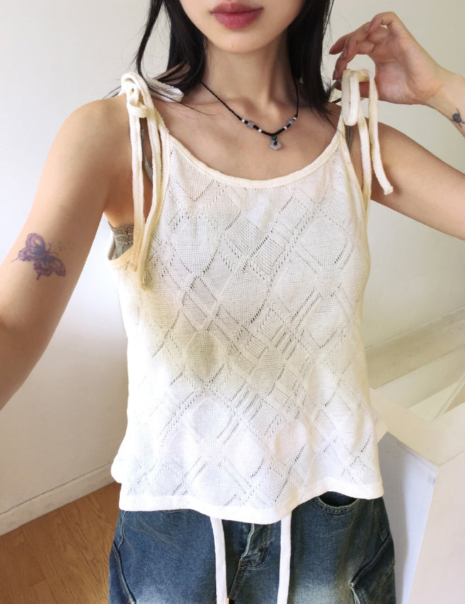 ウテンパンチングフレアニットひもビスチェキャミソール