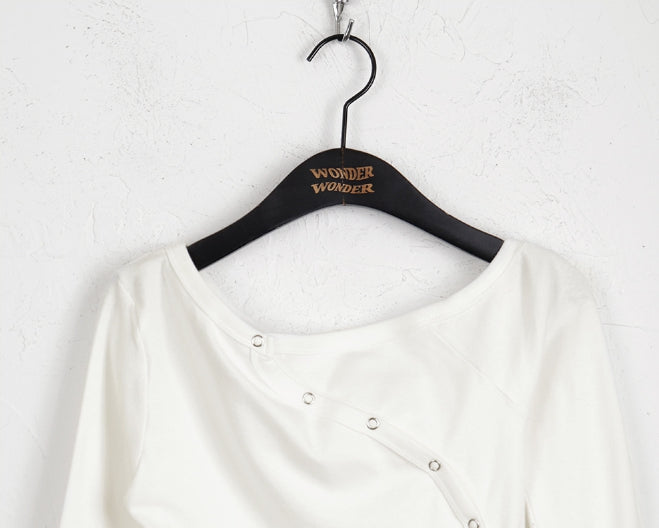 ベモンアンバランスショルダーカーブスナップボタン長袖カーディガンTシャツ