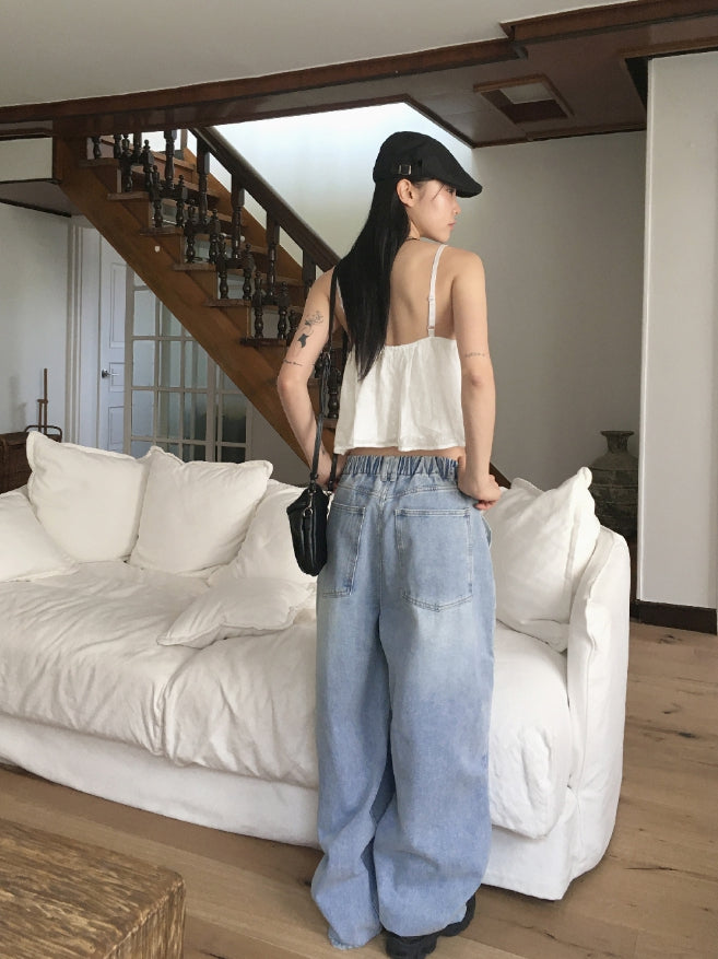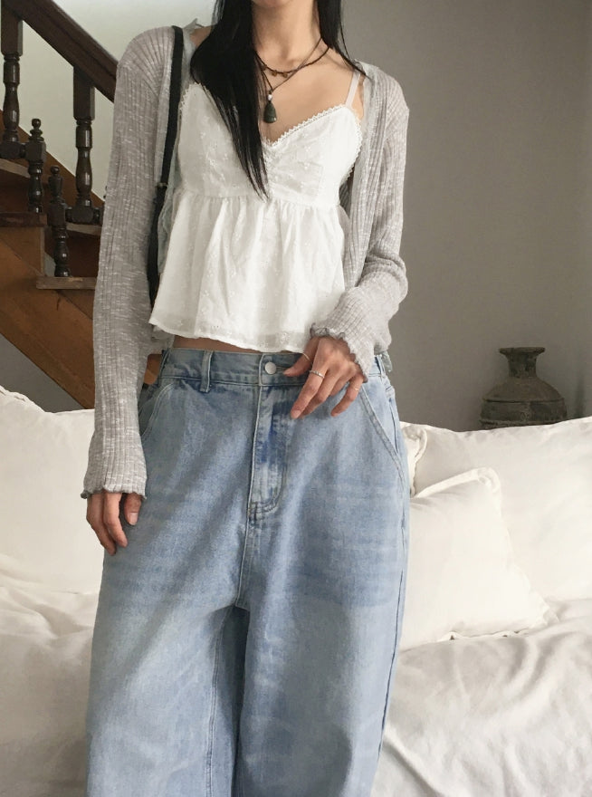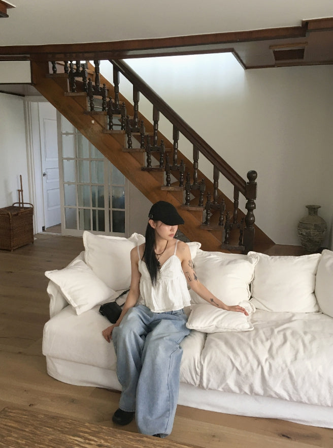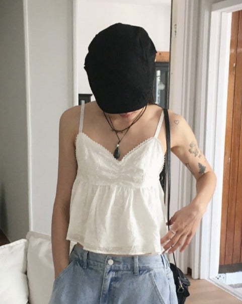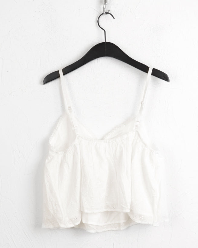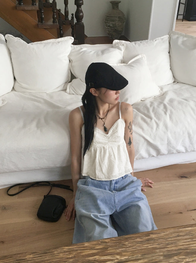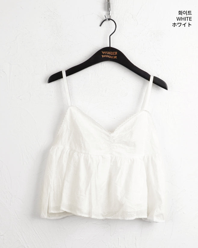 ニピムビンテージフラワーパンチングストリングレイヤードVネックブラウスキャミソール