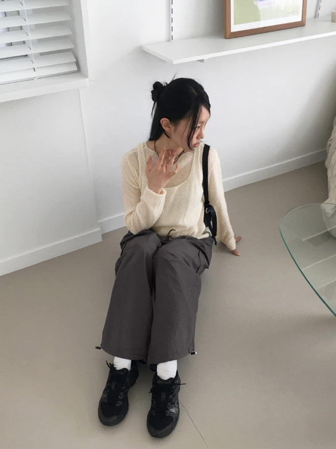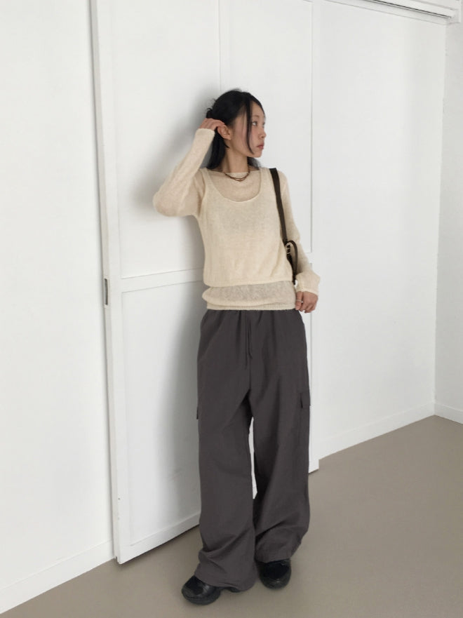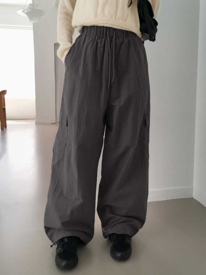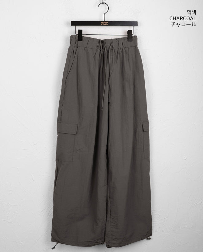 ウォーキーナイロンツーウェイカーゴロングワイドジョガーパンツ