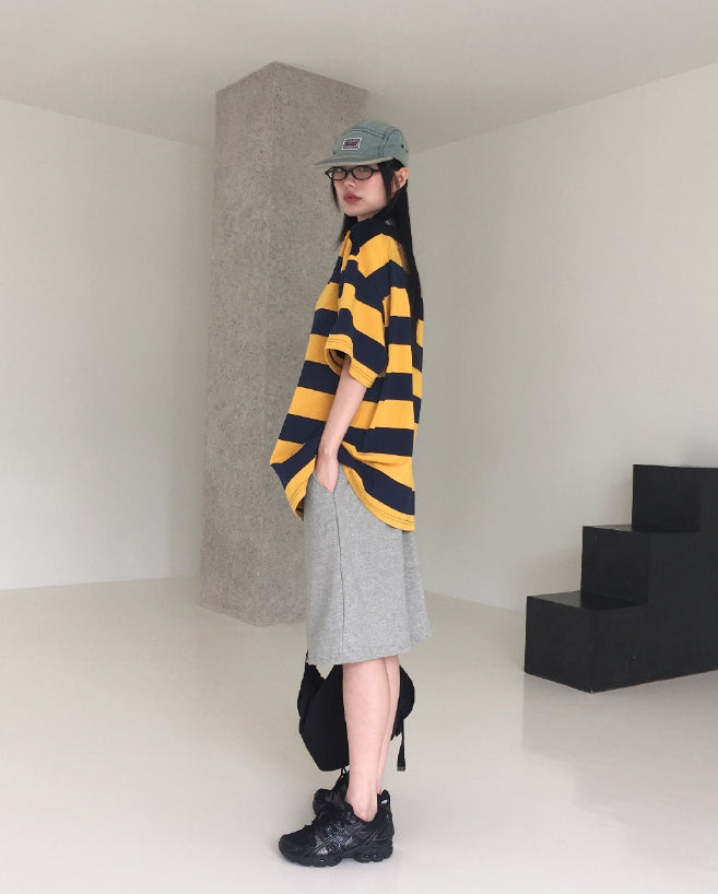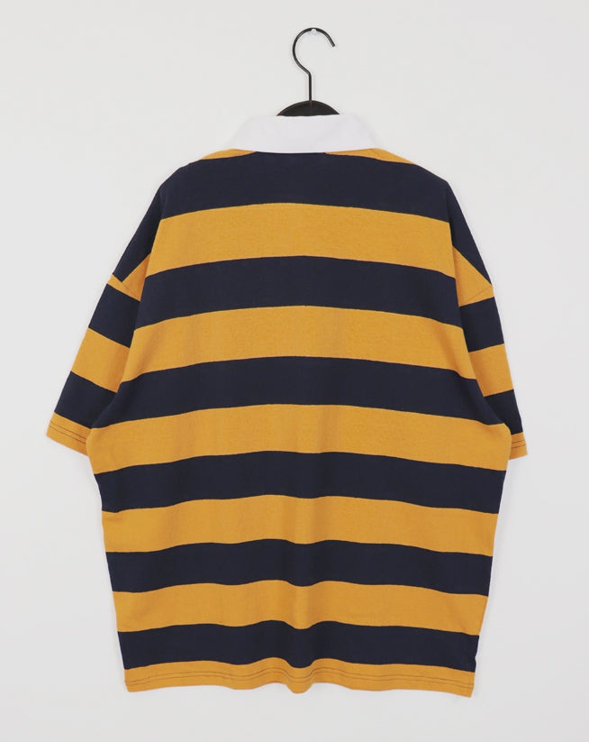 ワスバブルガムボーダー襟付き半袖Tシャツ