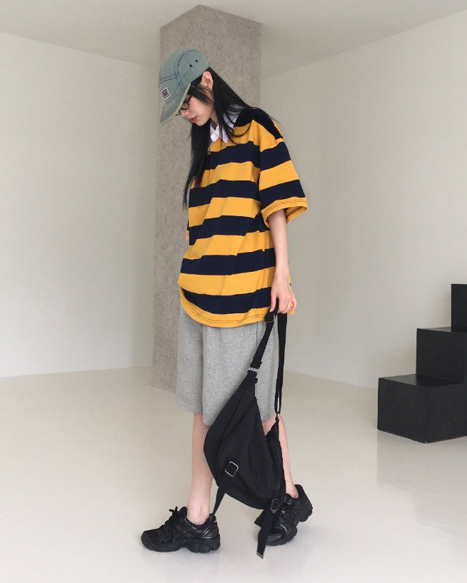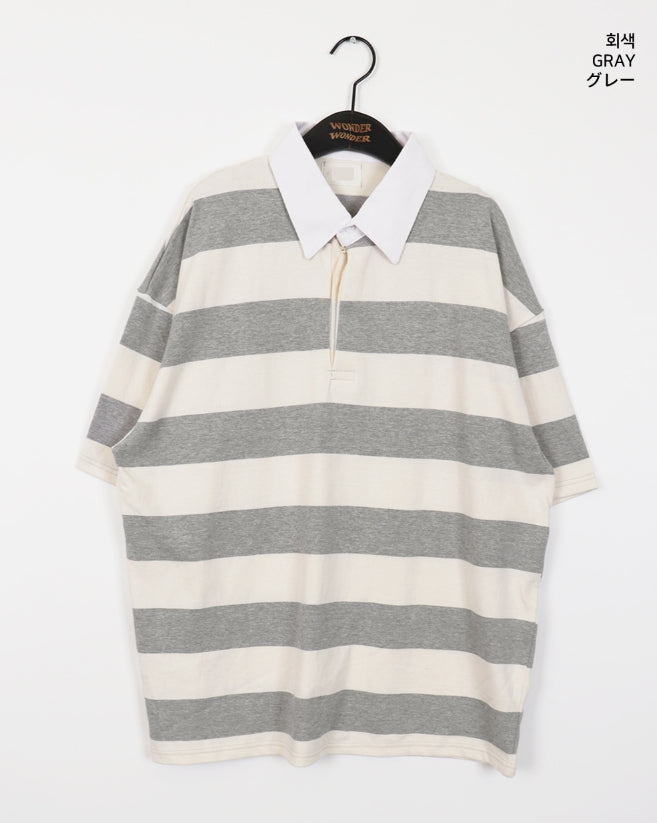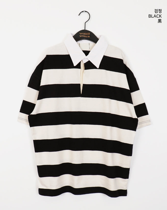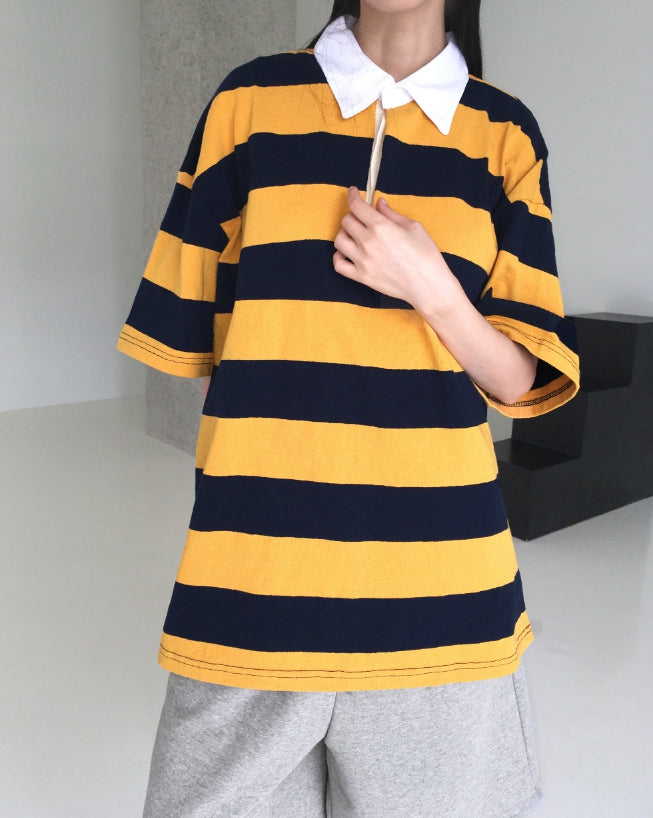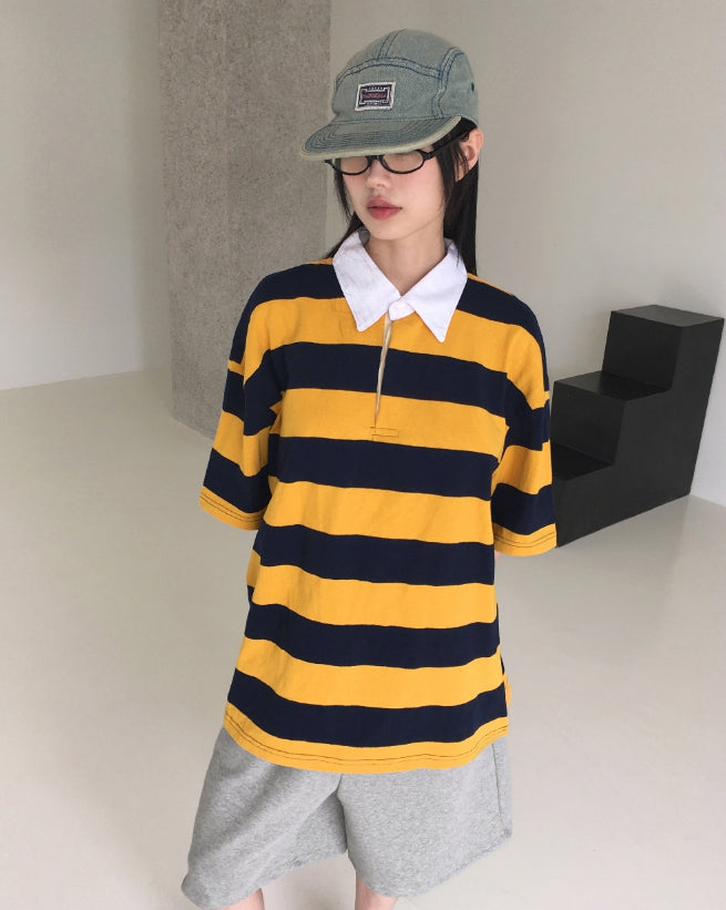 Was Bubble Gum Stripe Collar Short Sleeve T-shirt