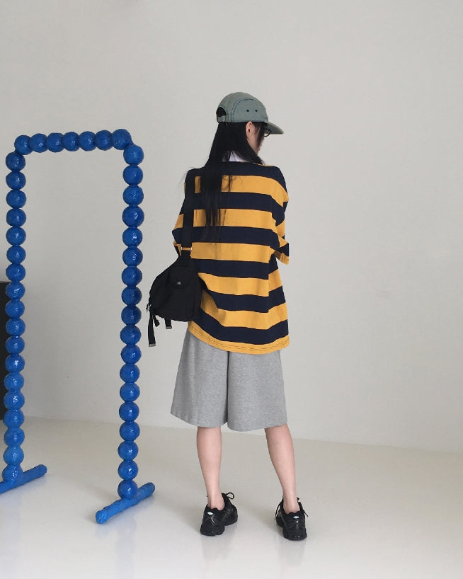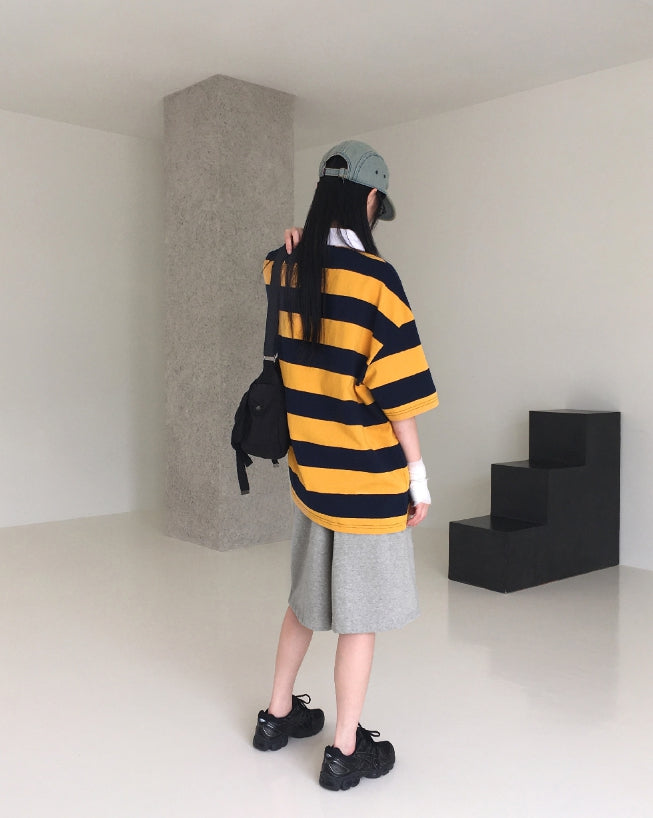 ワスバブルガムストライプカラー半袖Tシャツ