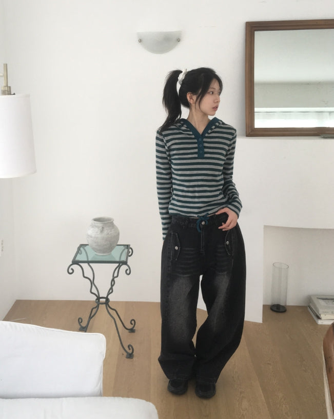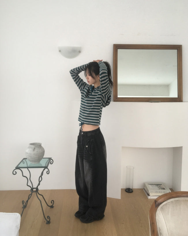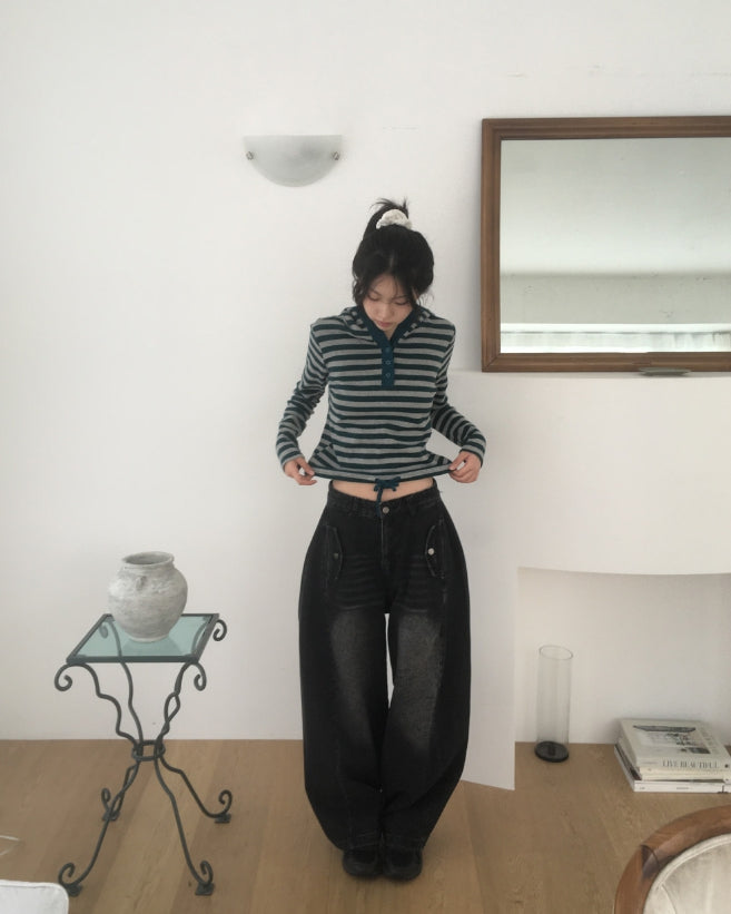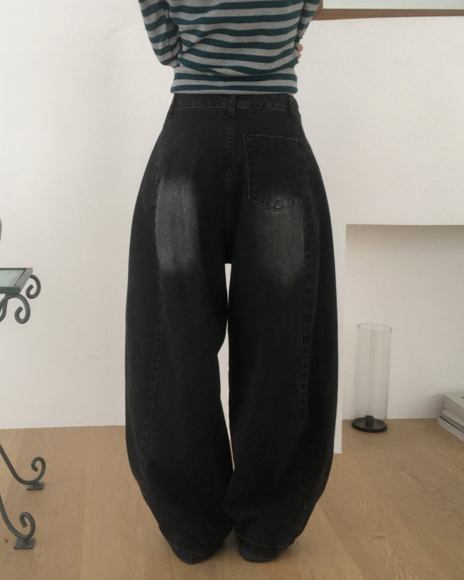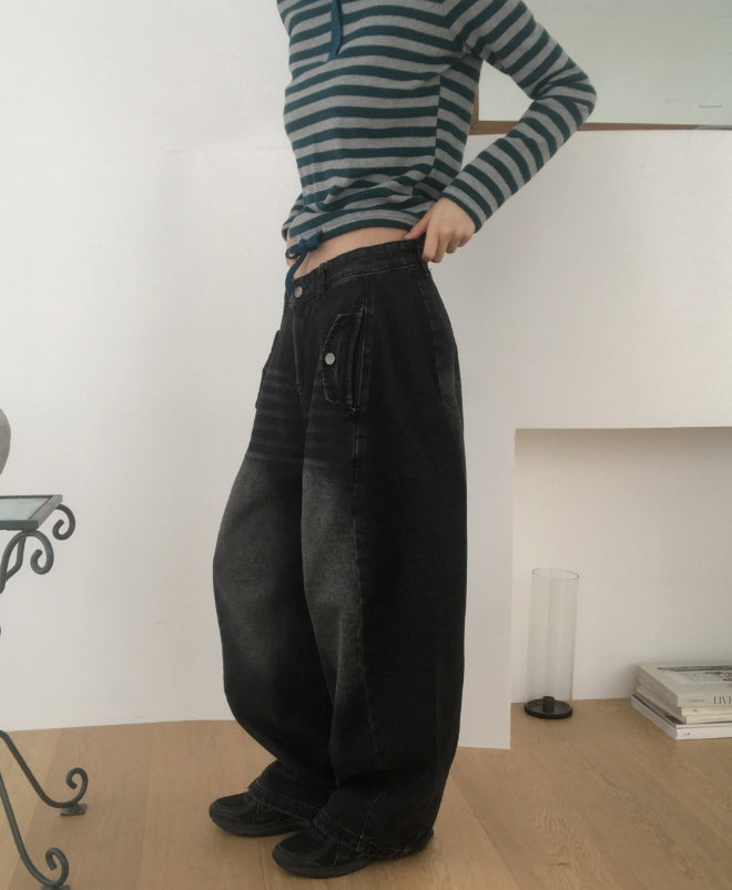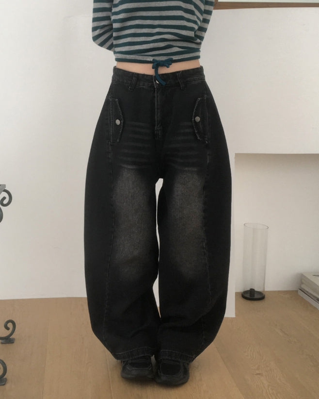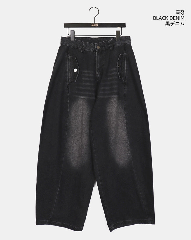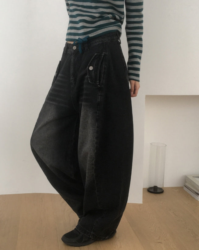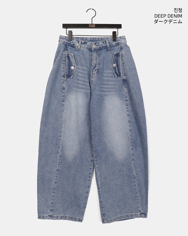 ウェルトボタンポケットウォッシュバルーンデニムパンツ