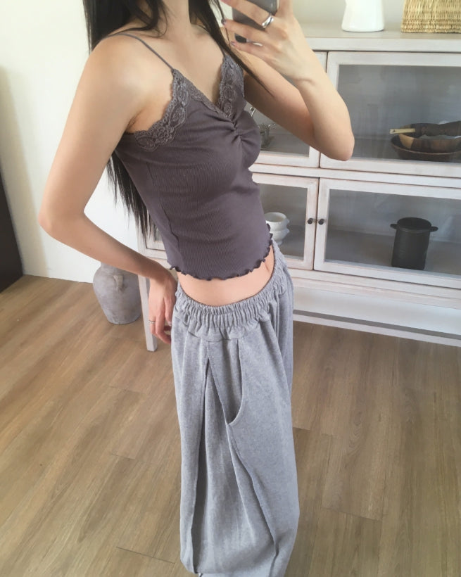 Wenme Lace Shirring Layered Sleeveless