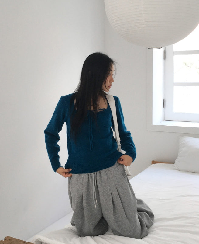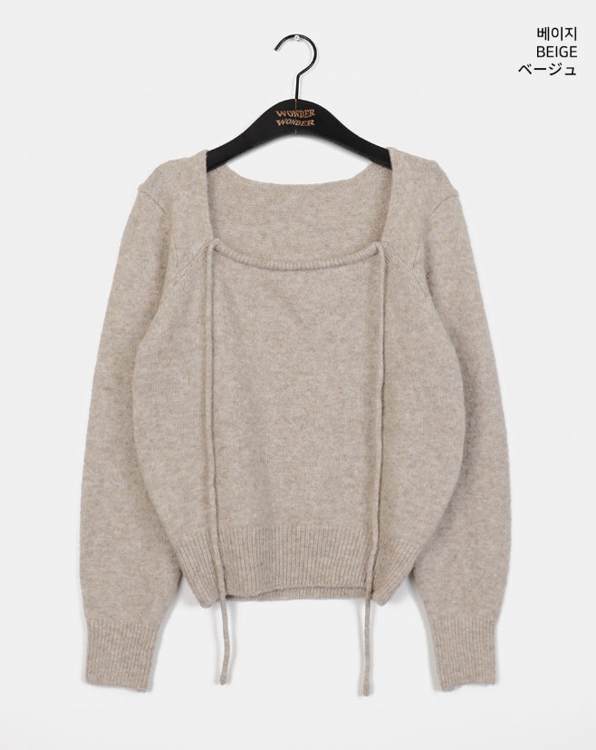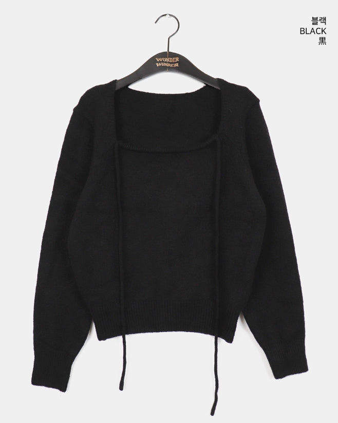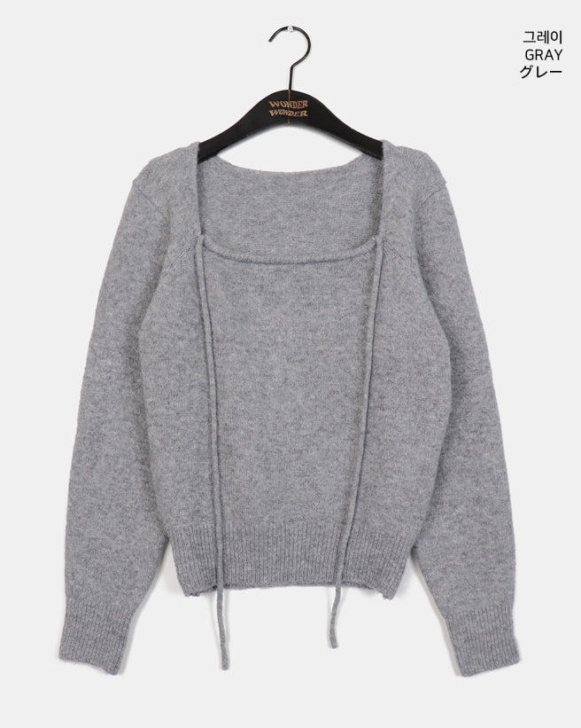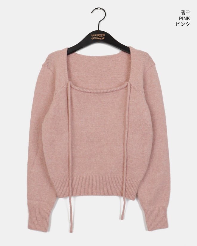 Hoyan Ribbon Halter Bolero Square Neck Knit