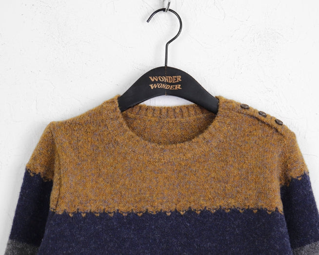 ムオウールボーダーカラーボタンラウンド長袖ニット