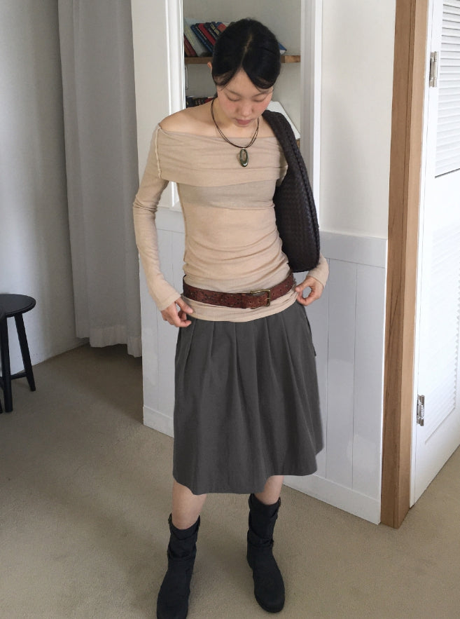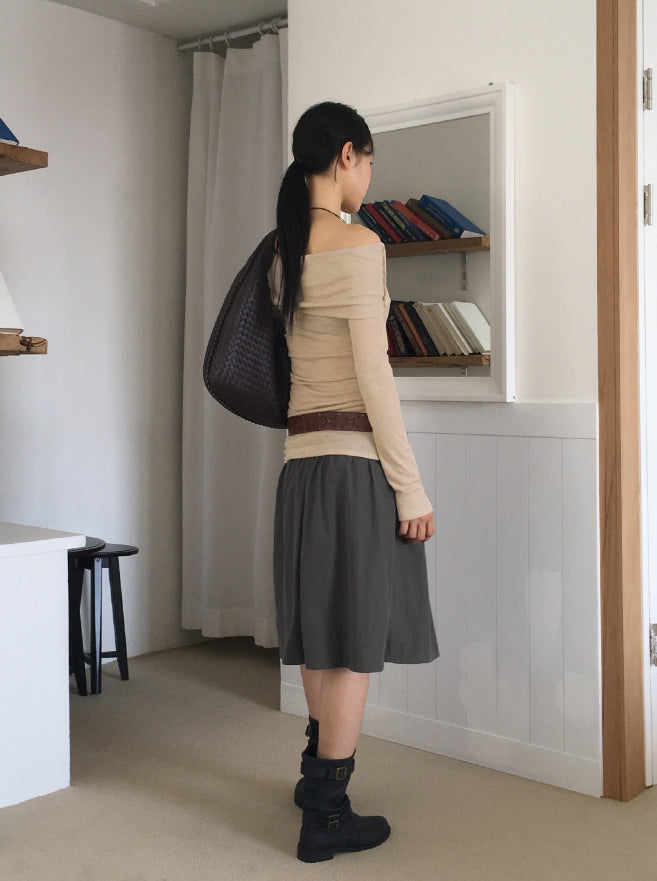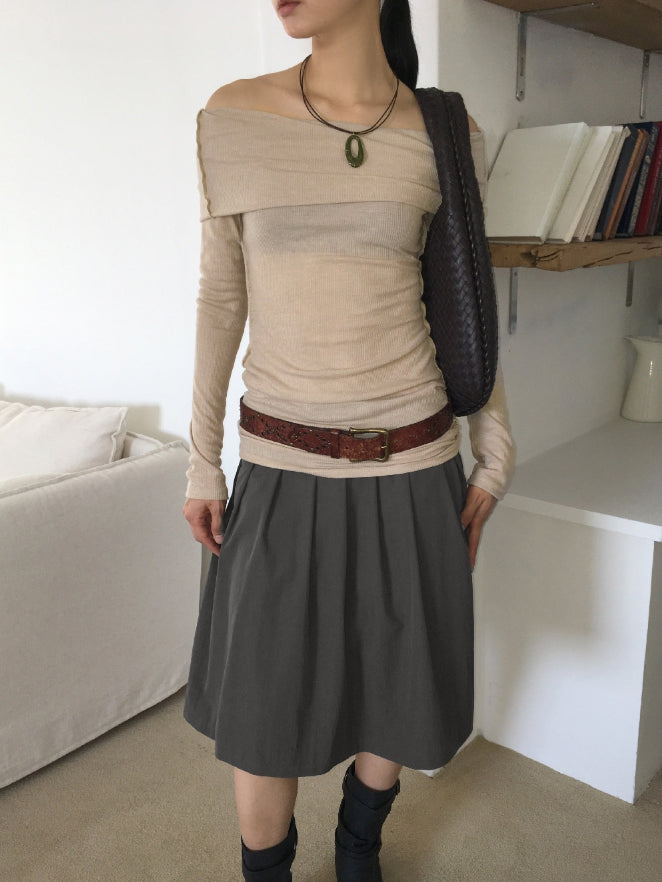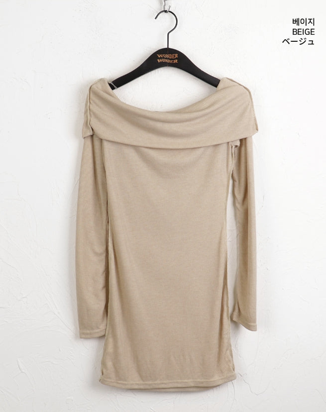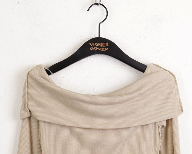 ラッパーモダールオーバーロックリブオフショルダー長袖Tシャツ