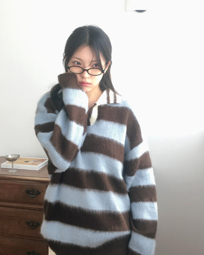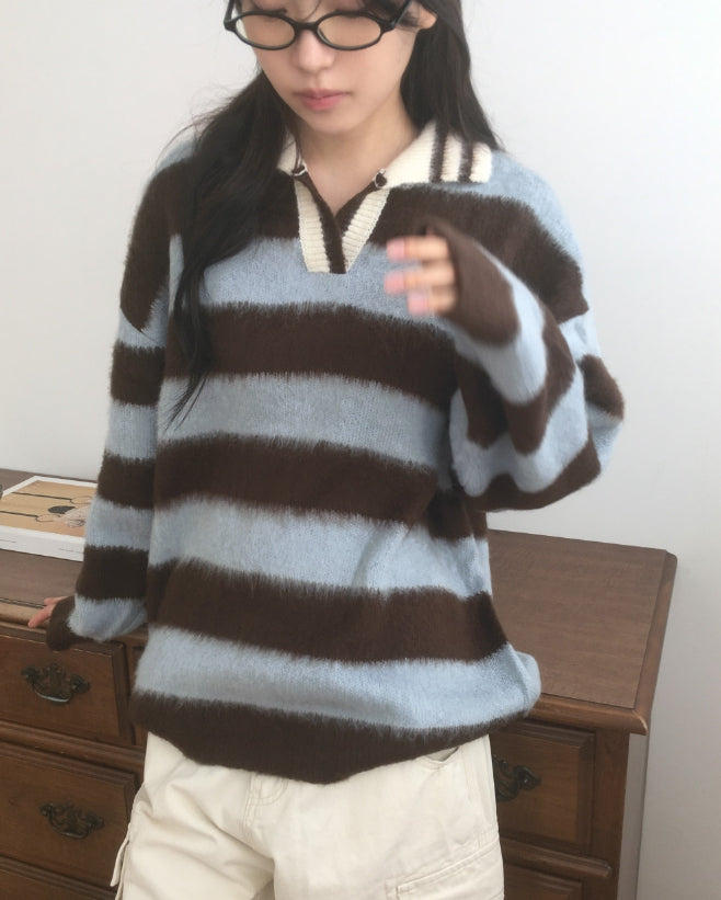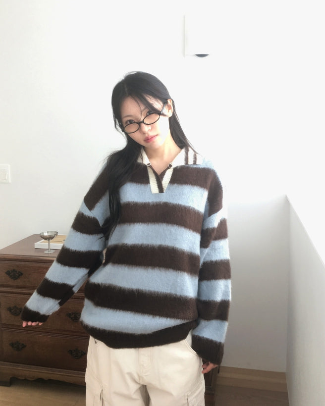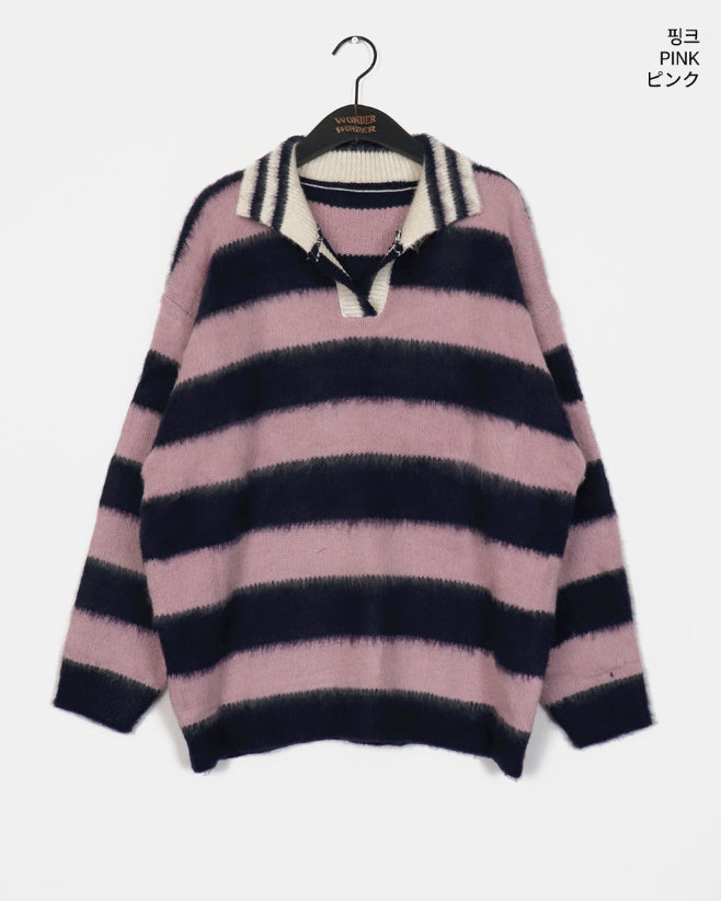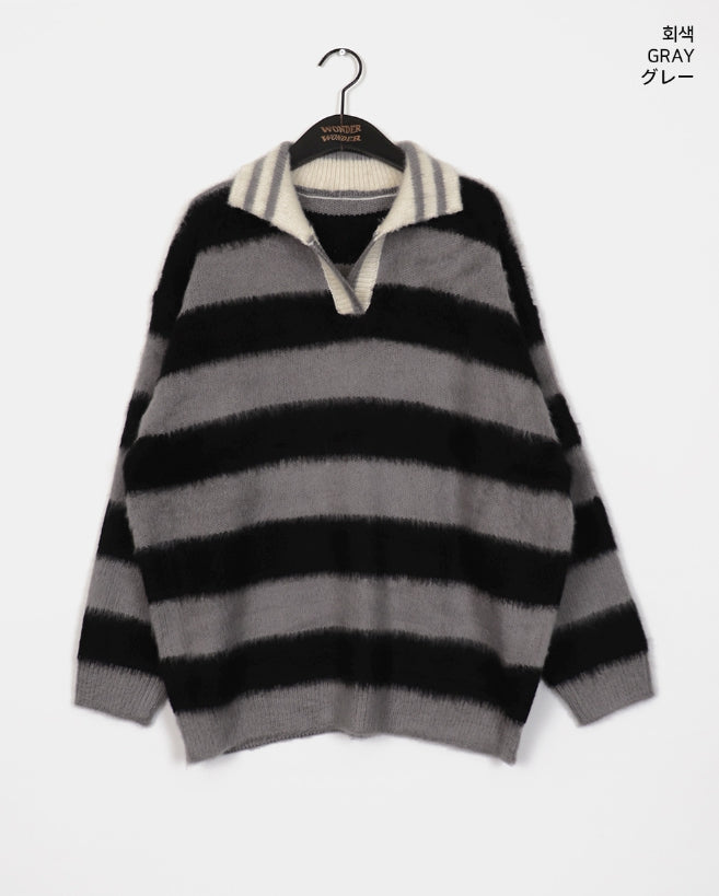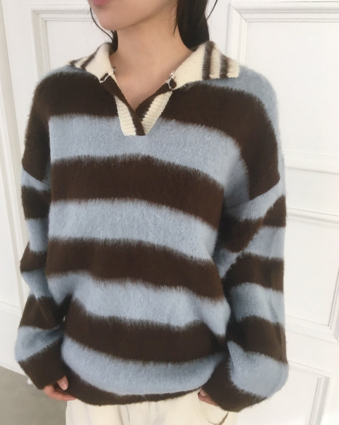 Zenzen Stripe Brush Collar Knit