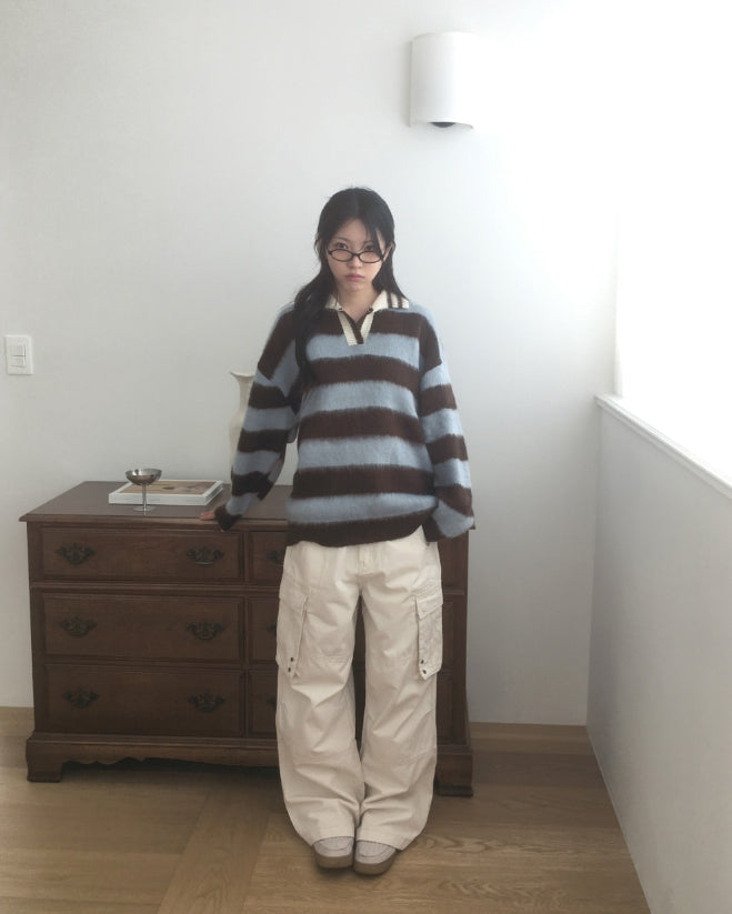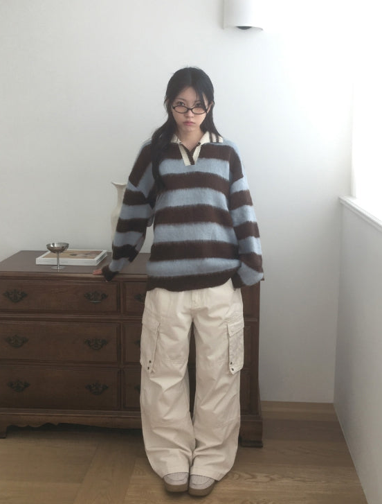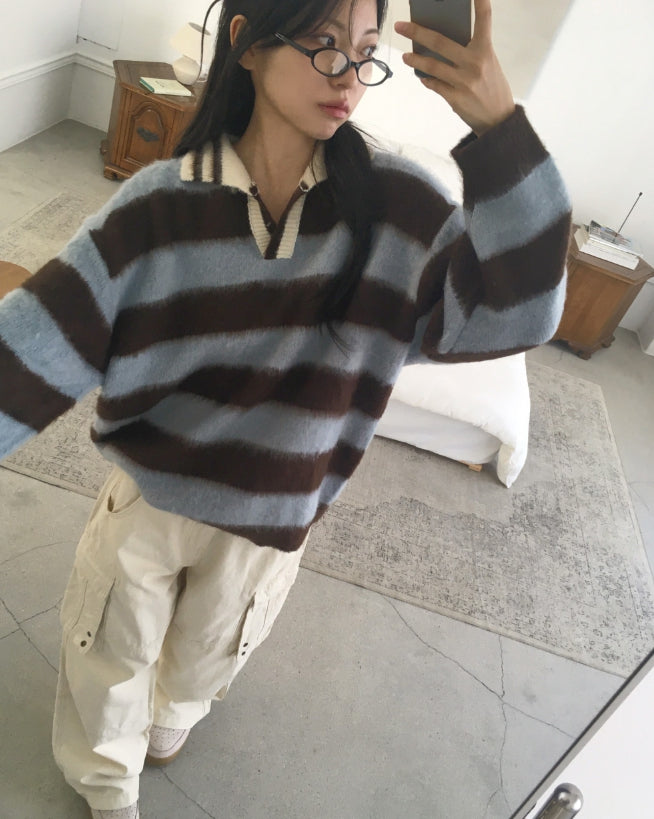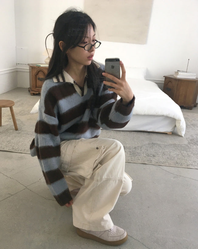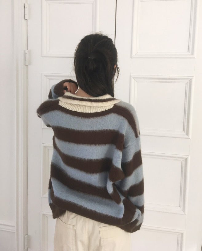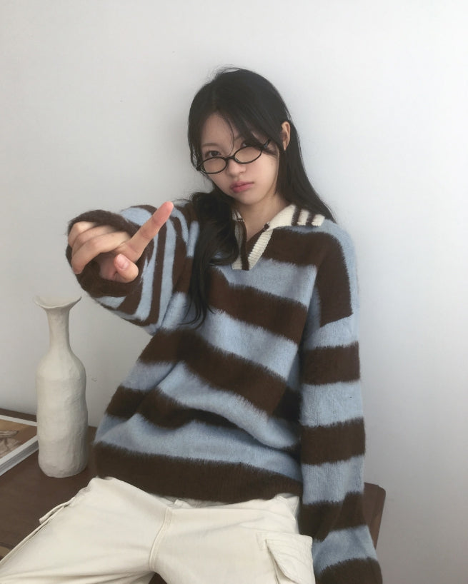 Zenzen Stripe Brush Collar Knit