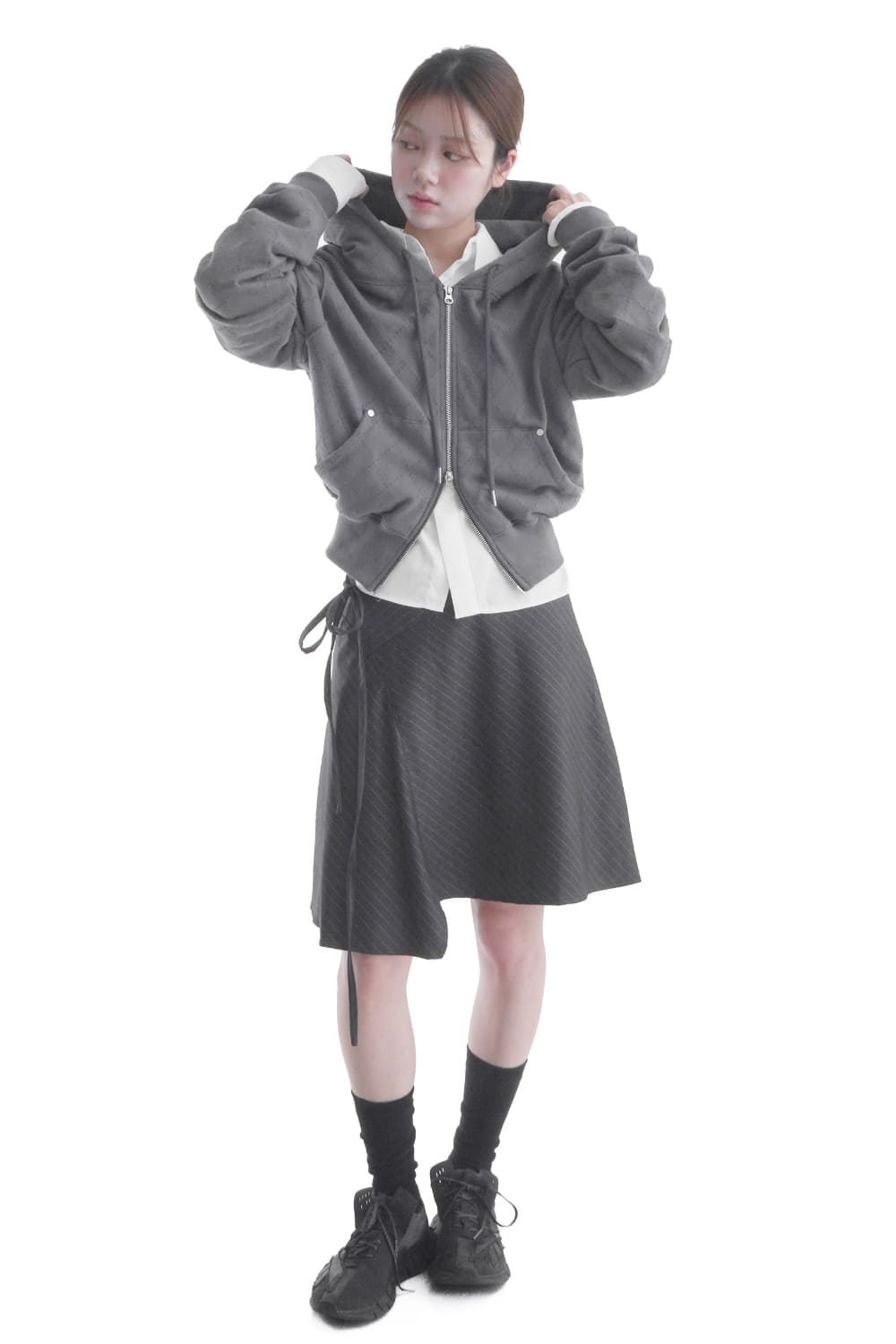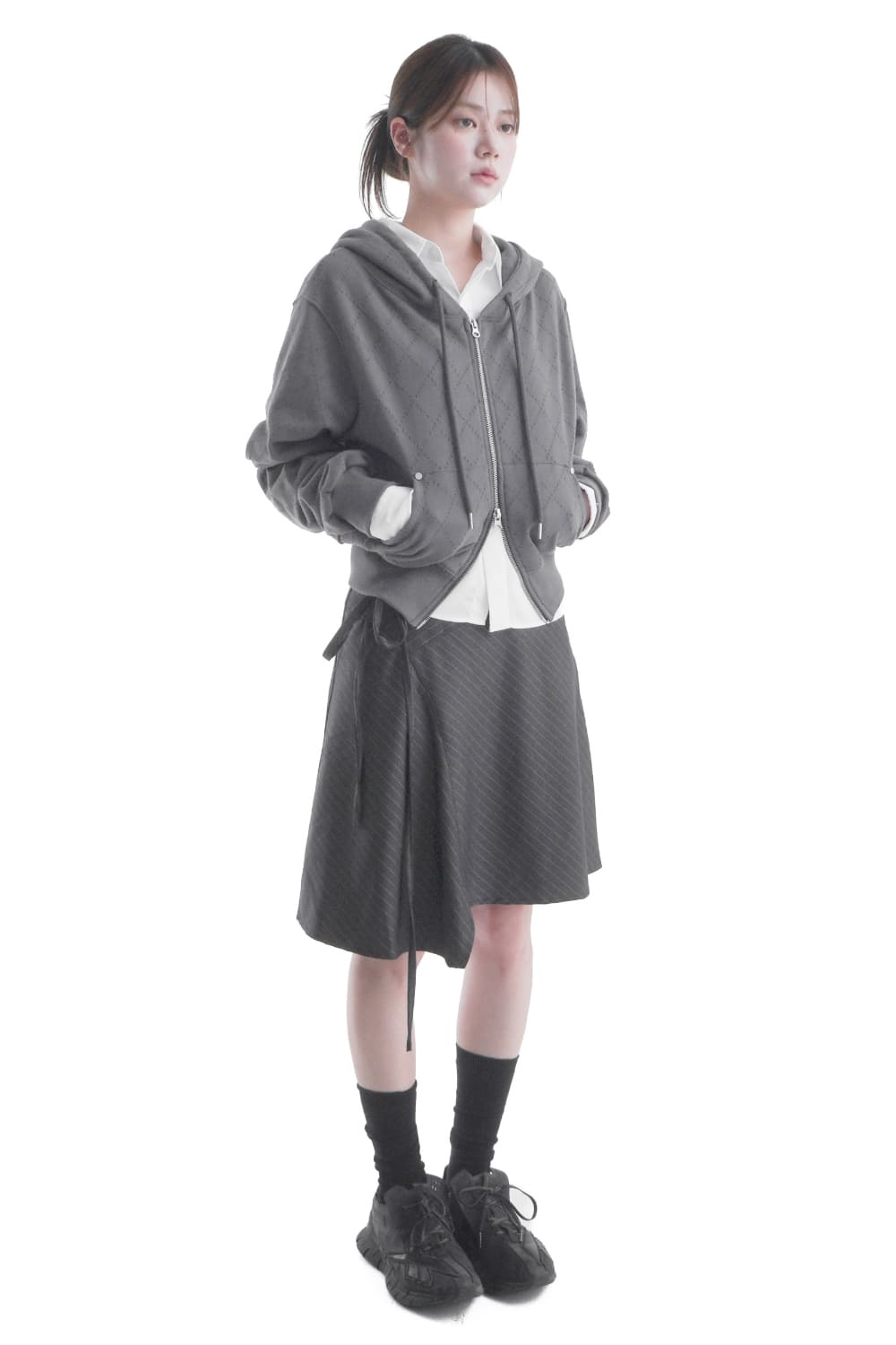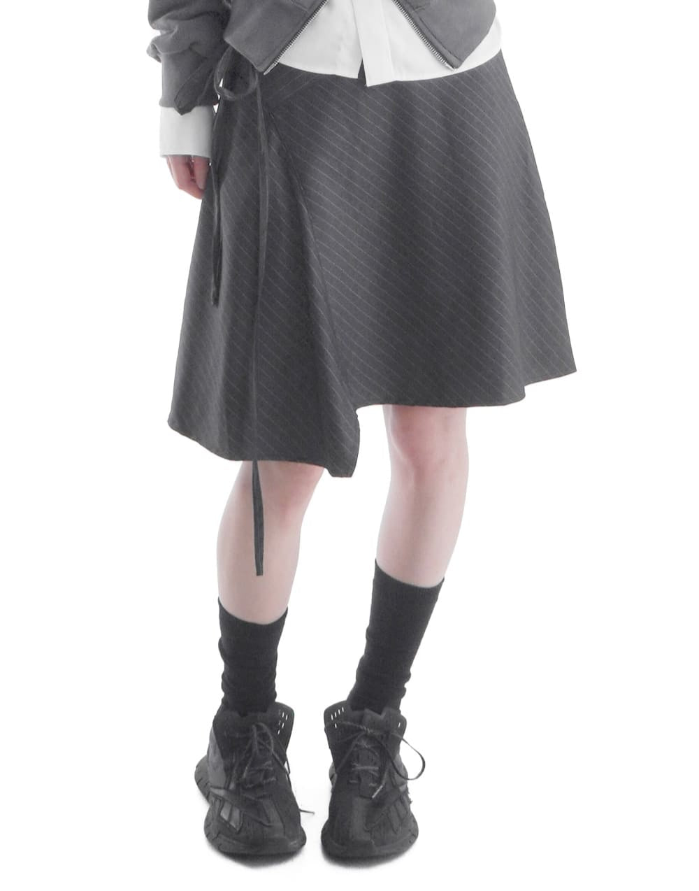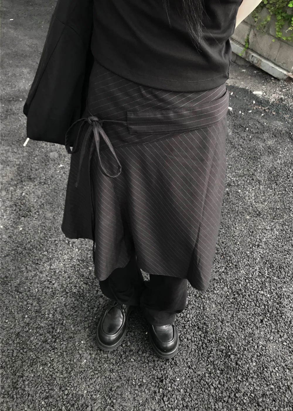 BELTED UNBALANCE STRIPE SKIRT