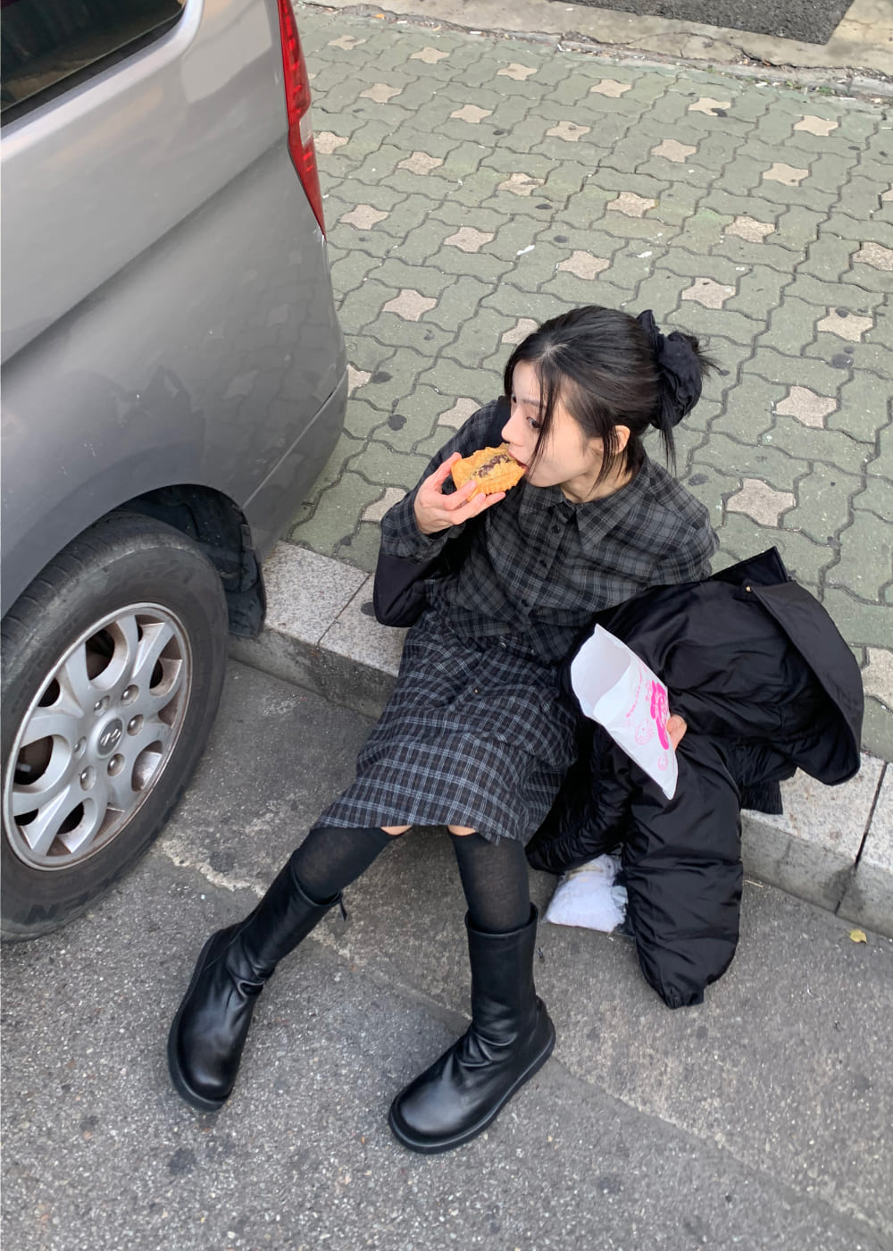 チェックアイレットスカート