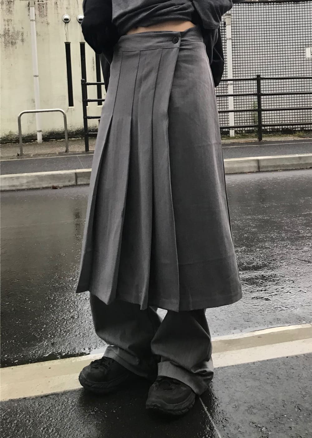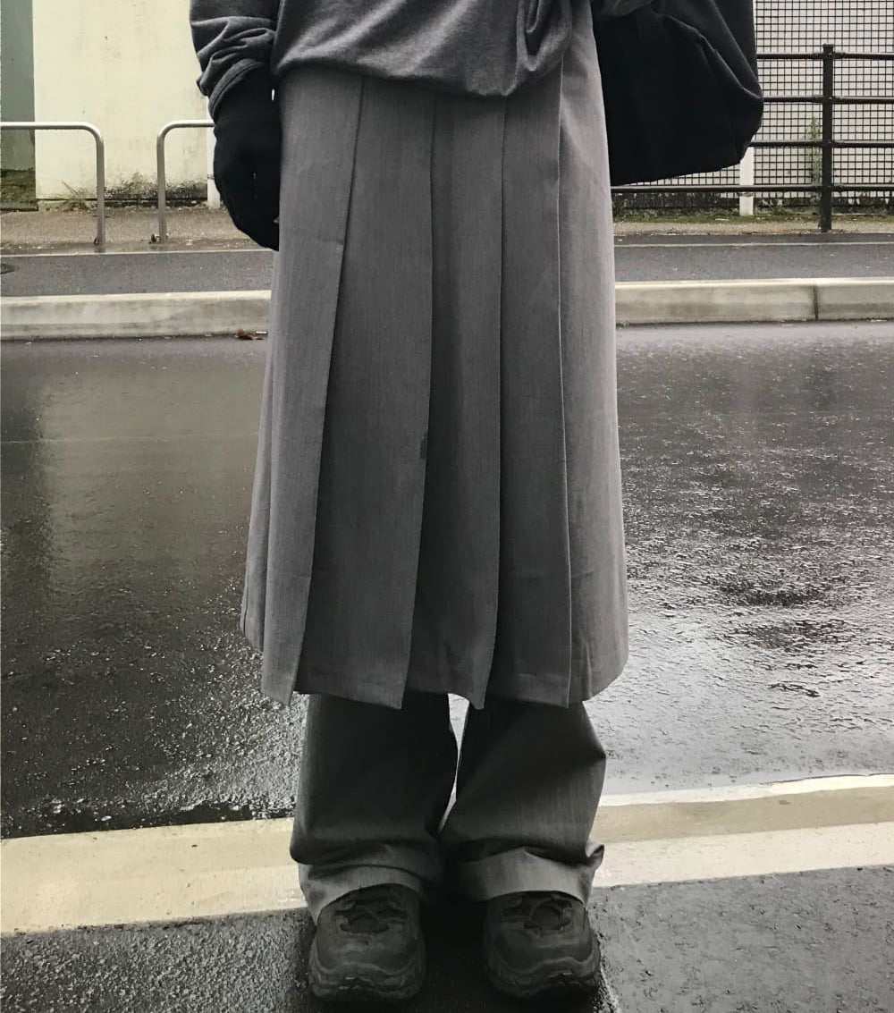 PLEATS WRAP BUTTON SKIRT