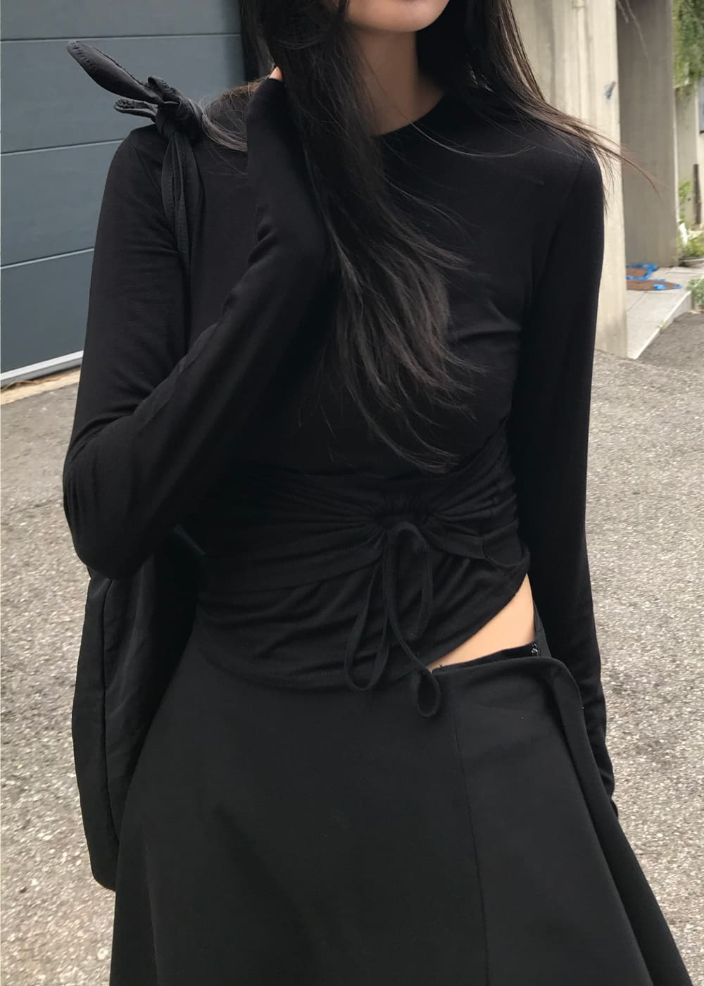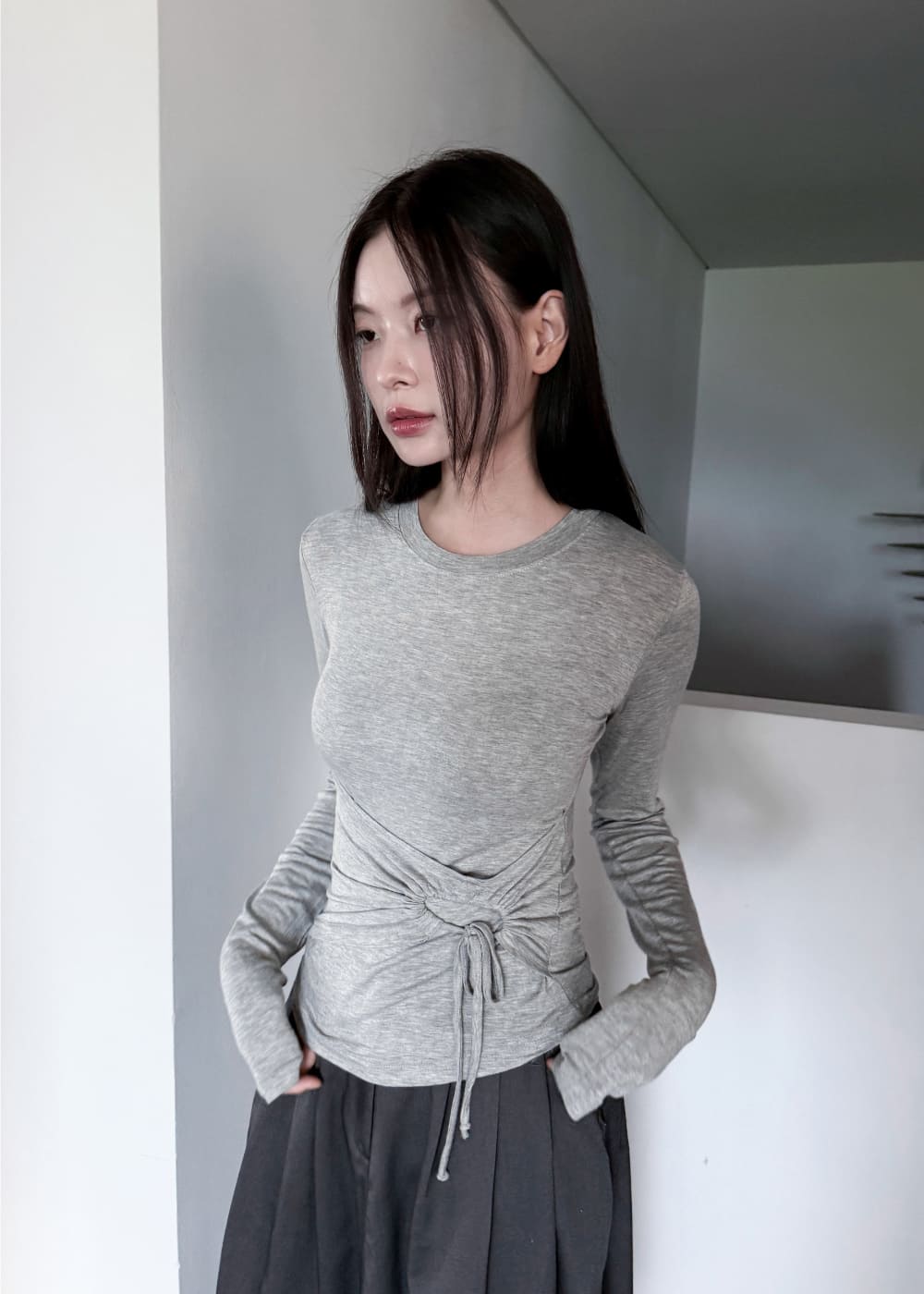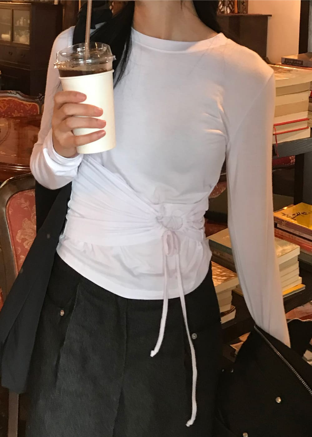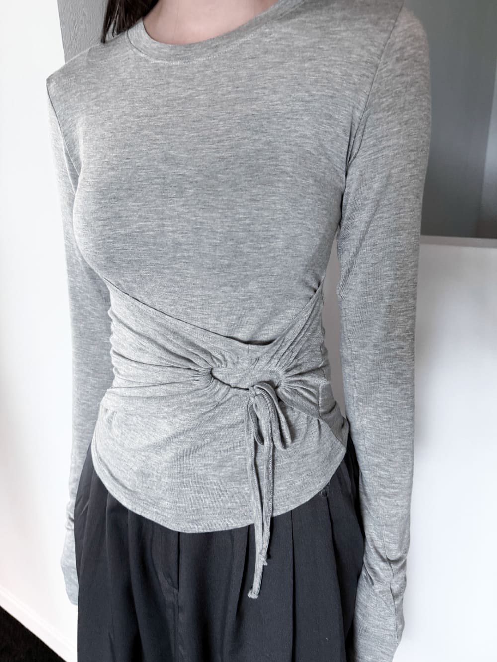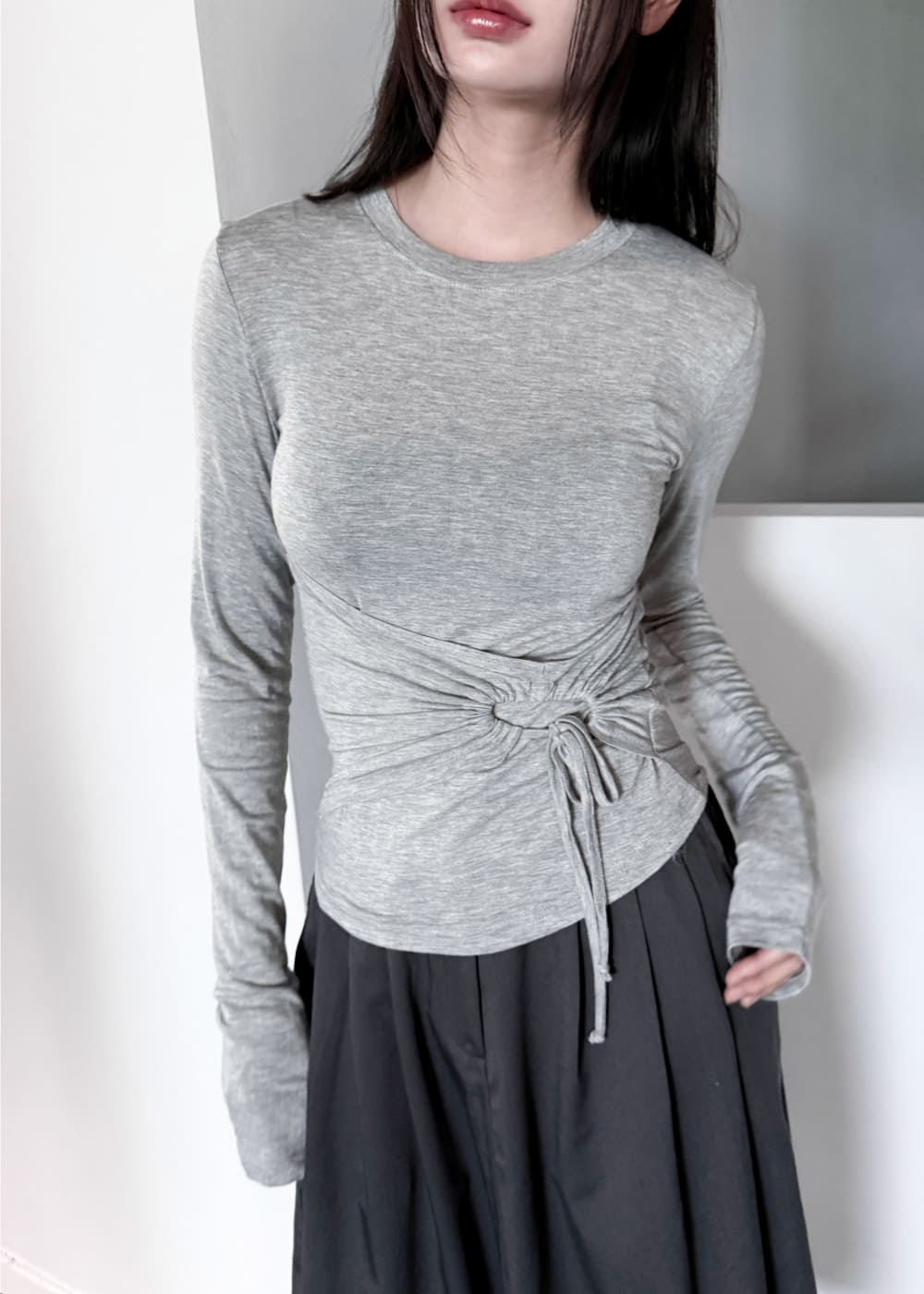 STRING HOLE SHIRRING TEE