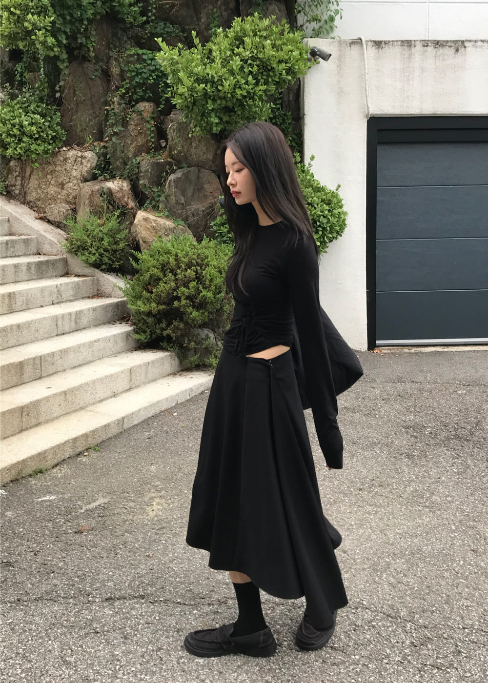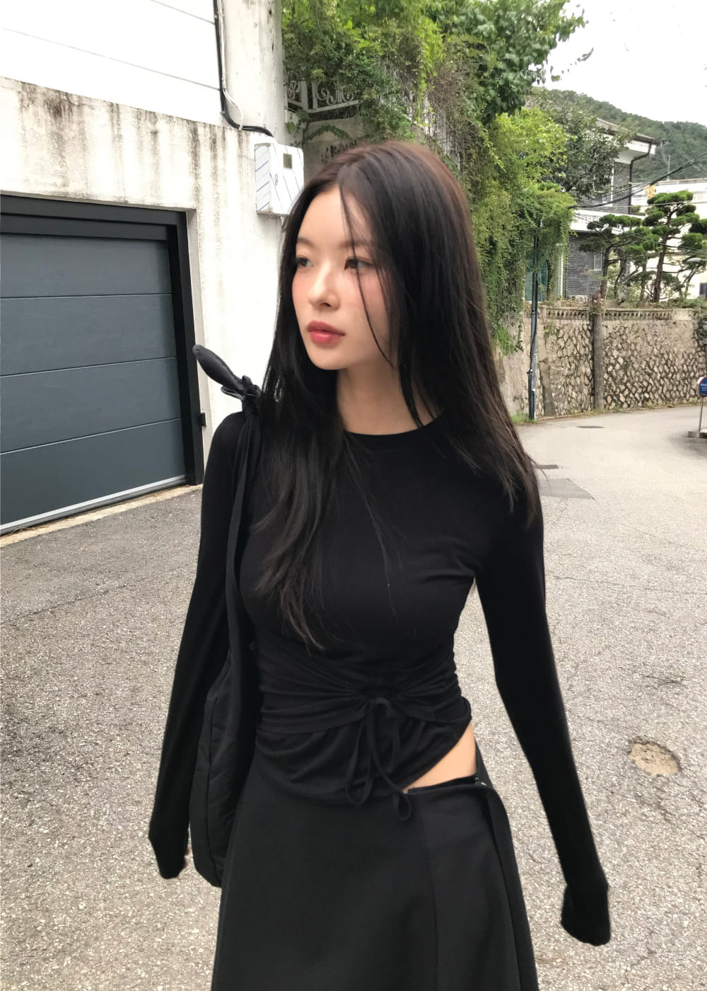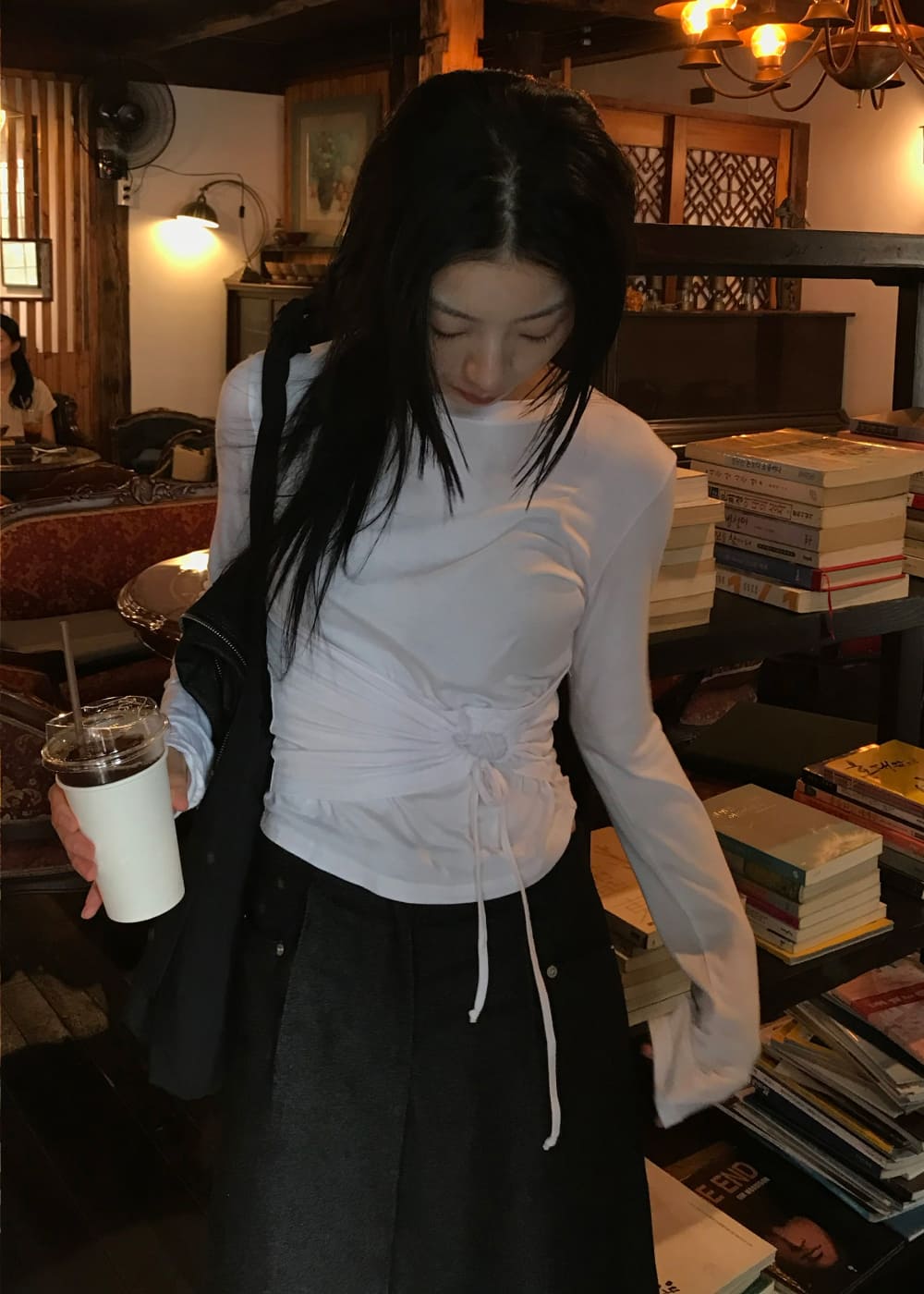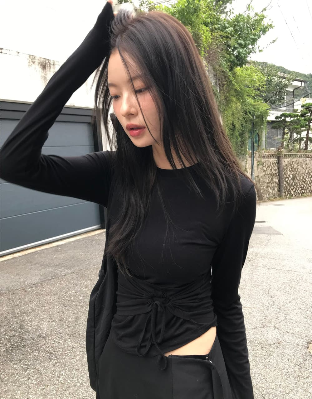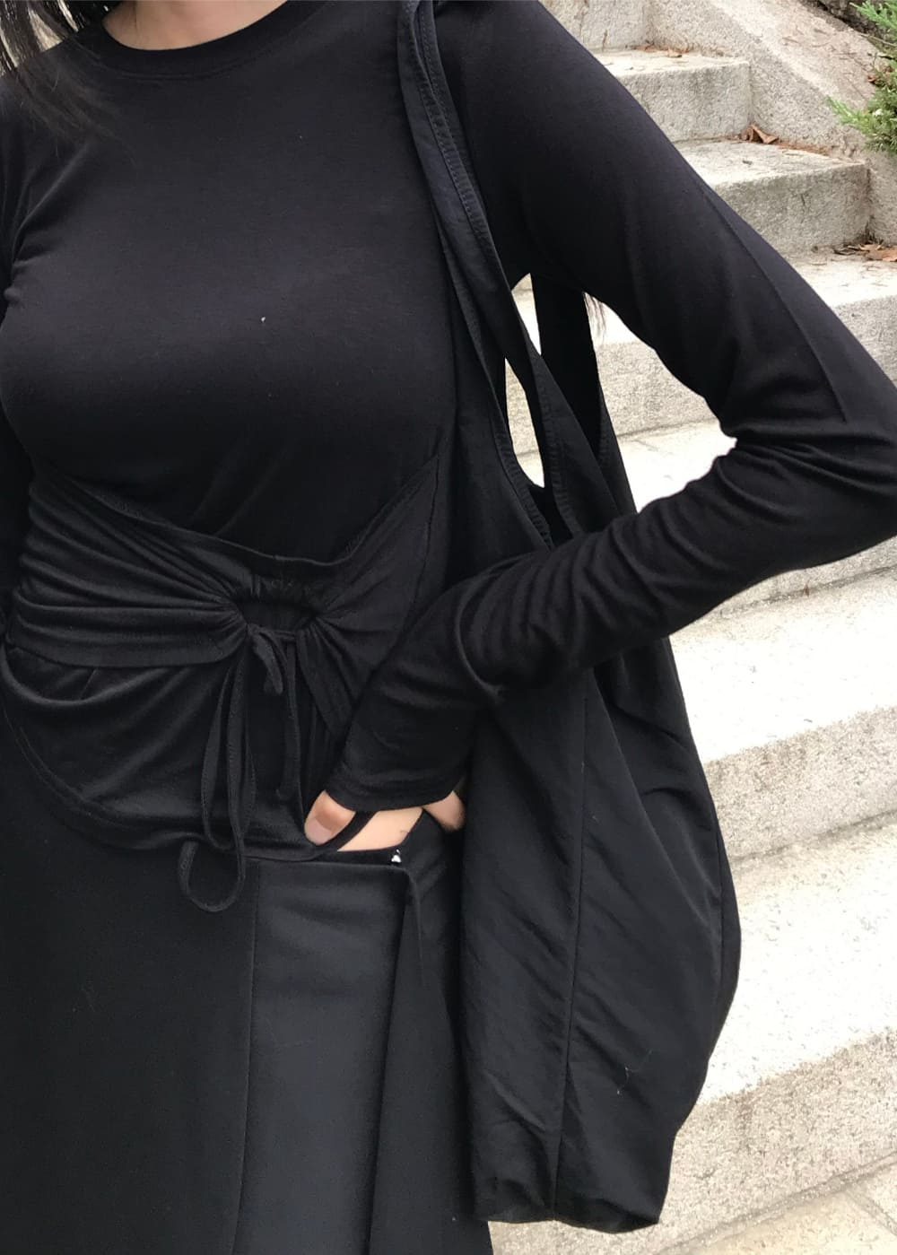 STRING HOLE SHIRRING TEE