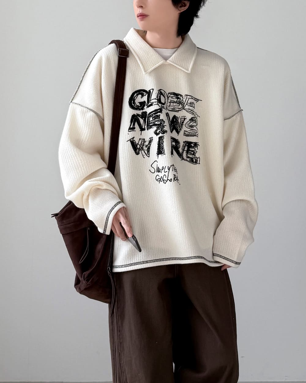 フィニッシュ襟付きニットTシャツ