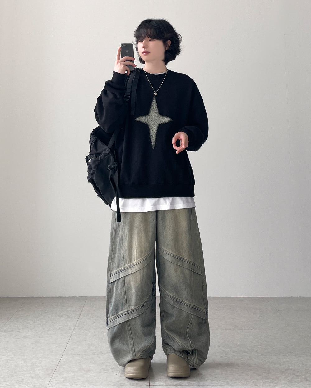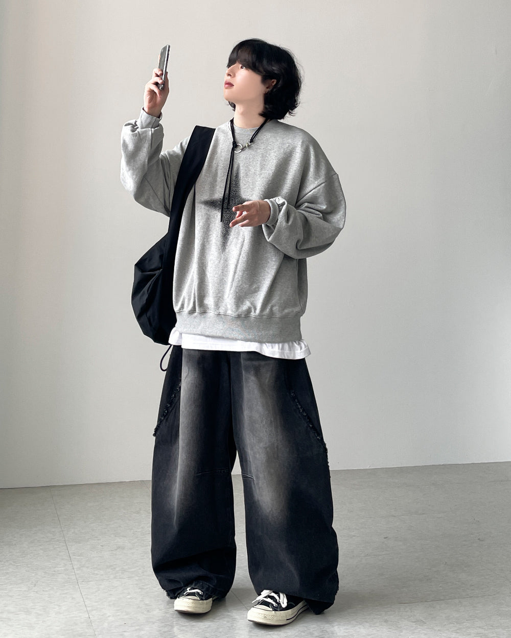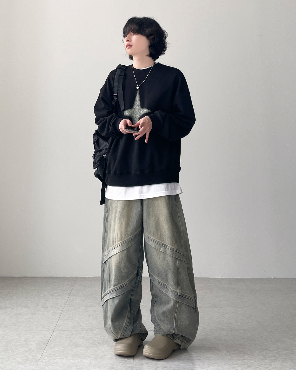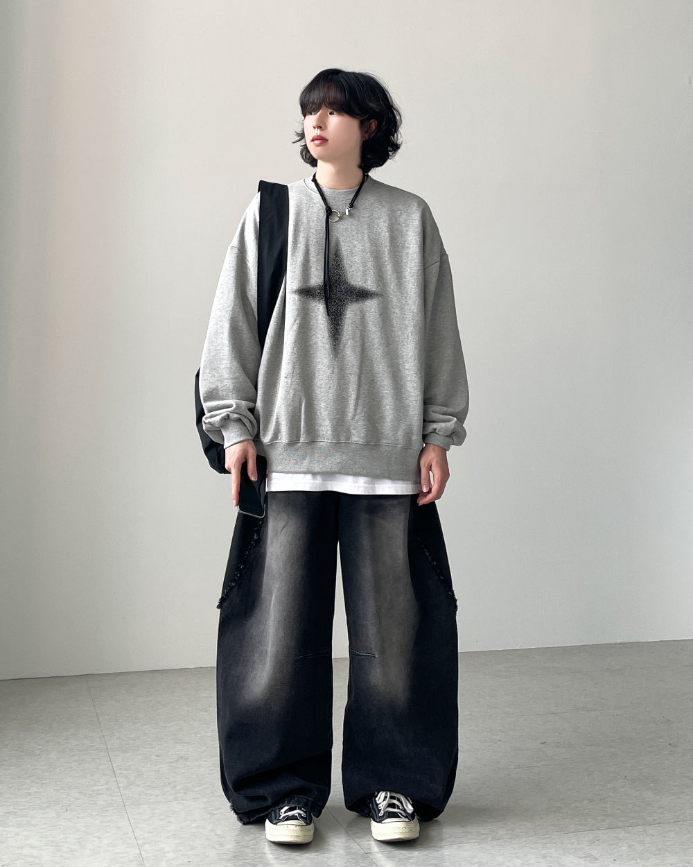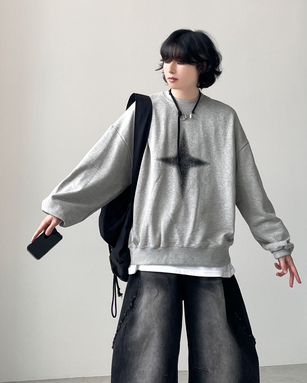 グリッターウォッシュ加工オーバースウェットシャツ