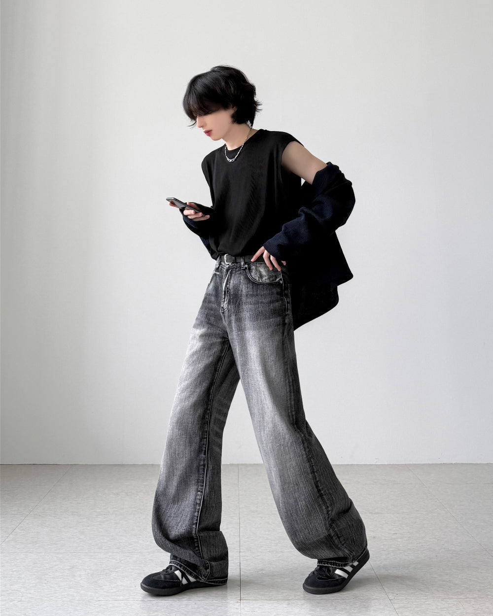 -M (ウエスト76 ヒップ- 股上32 股下73 もも周り64 裾周り51 総丈105)