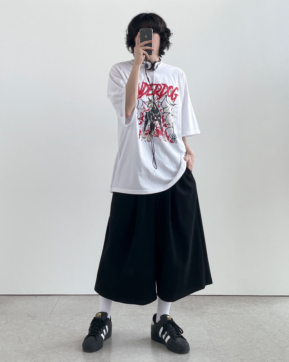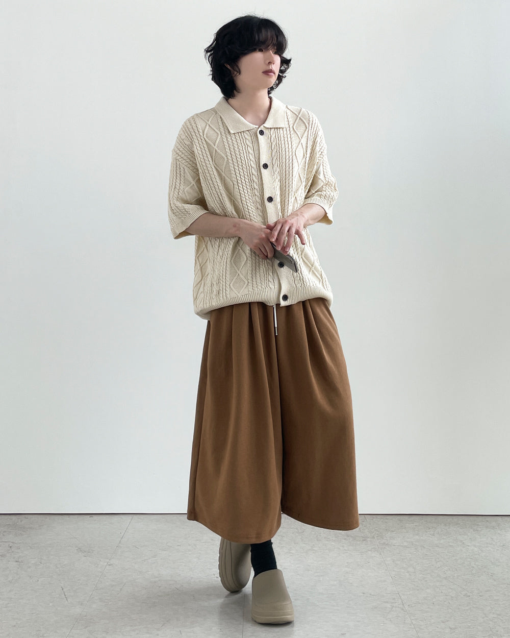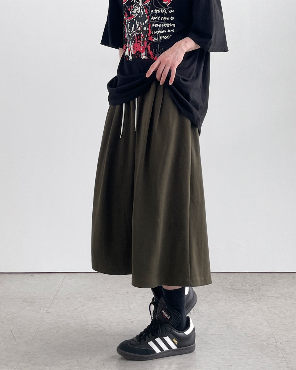 -ONE SIZE (ウエスト(ゴム)60-96 ヒップ- 股上44 股下28 もも周り76 裾周り80 総丈72)