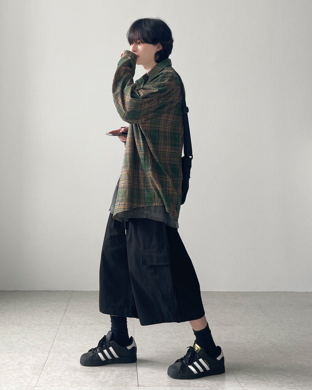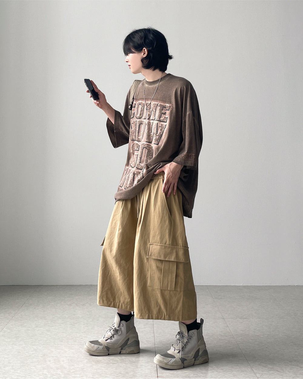 -ONE SIZE (ウエスト(ゴム)68-90 ヒップ- 股上39 股下29 もも周り80 裾周り68 総丈68)