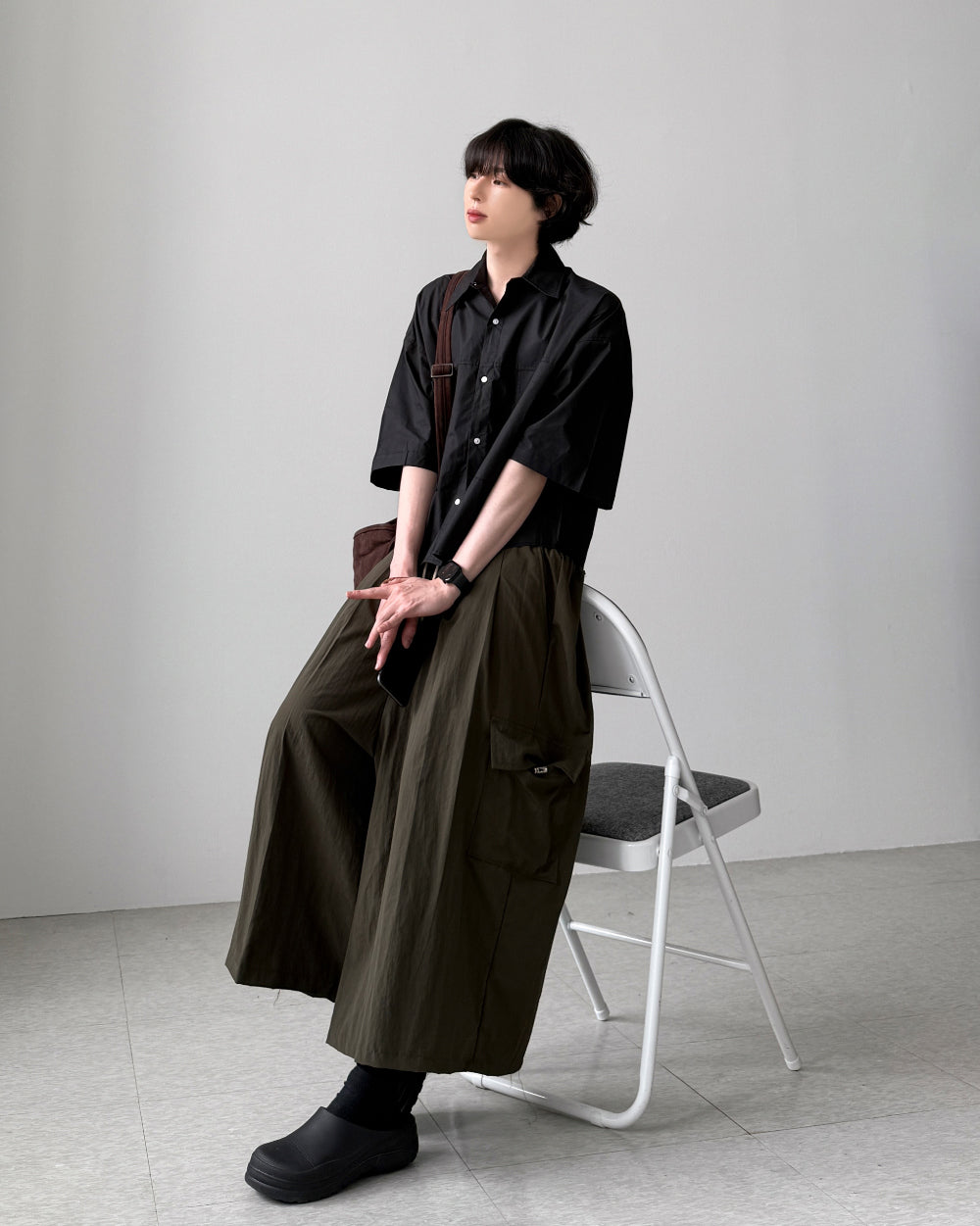 -ONE SIZE (ウエスト(ゴム)60-100 ヒップ- 股上47 股下31 もも周り92 裾周り96 総丈78)