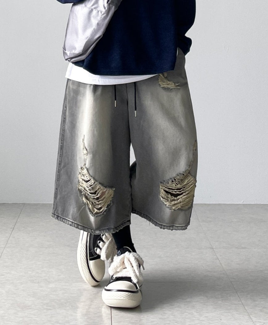 -ONE SIZE (ウエスト(ゴム)66-88 ヒップ- 股上38 股下33 もも周り78 裾周り70 総丈71)