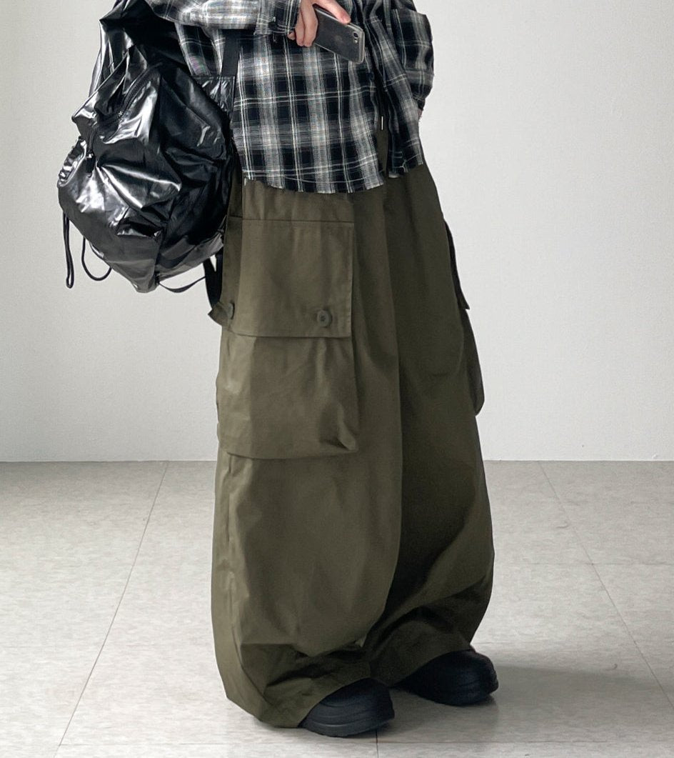 -ONE SIZE (ウエスト(ゴム)70-90 ヒップ- 股上37 股下68 もも周り70 裾周り62 総丈105)