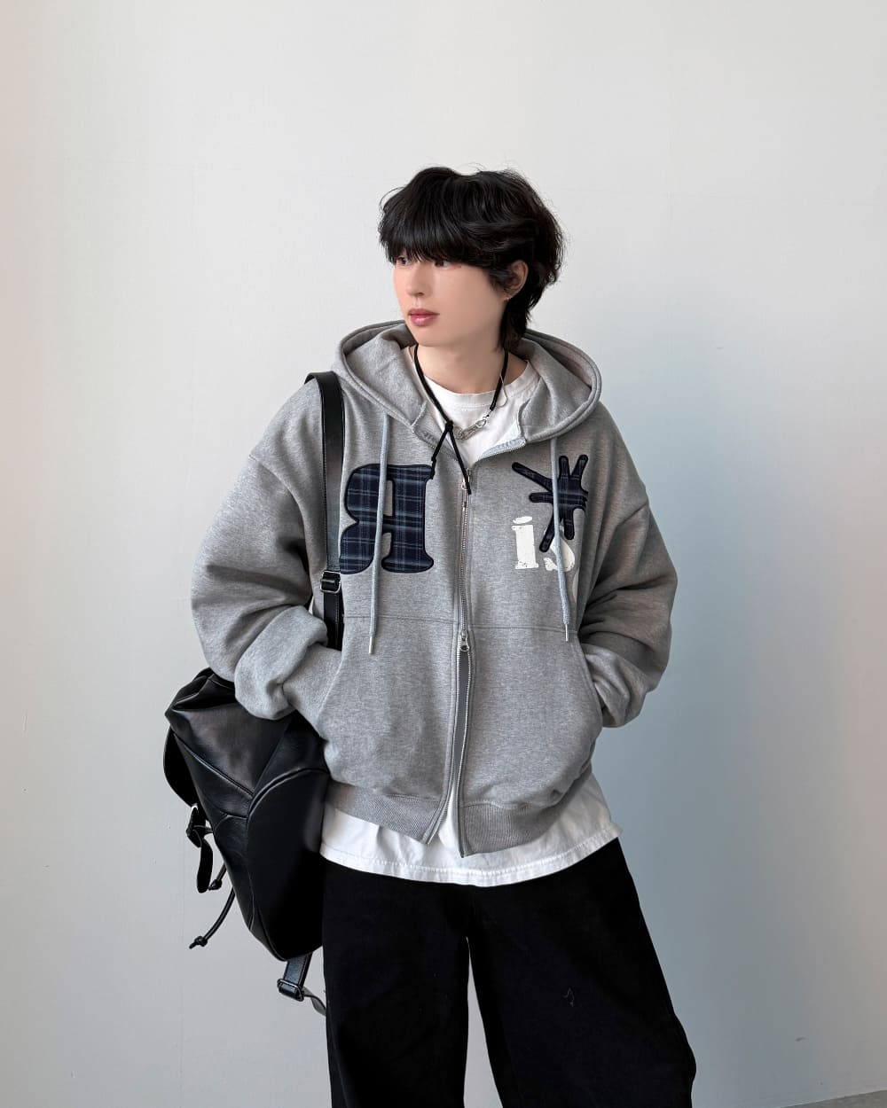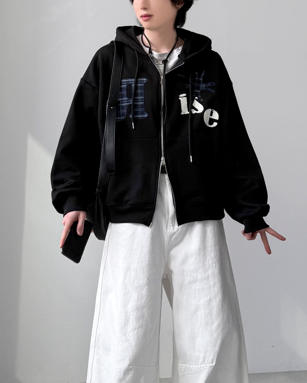 ニュアンスチェックフードジップアップ